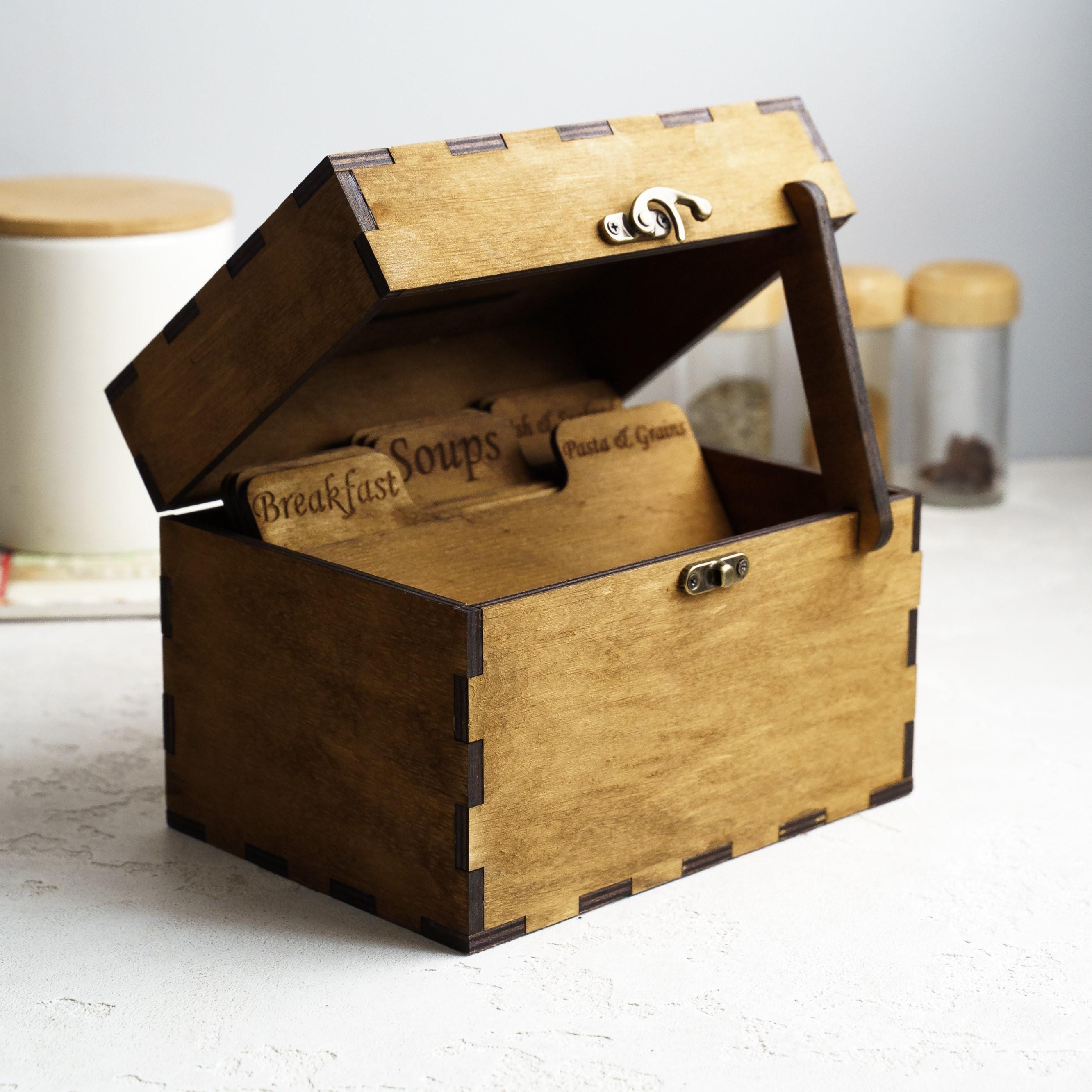 Recipe box with dividers, Wood recipe box, Recipe box and cards, Pe...