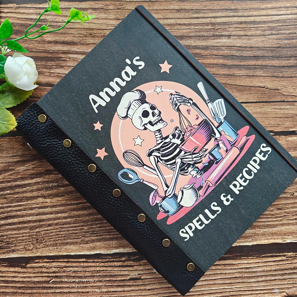 Custom Halloween Recipe Book, Wooden Recipe Binder, Skull Recipe Jo...