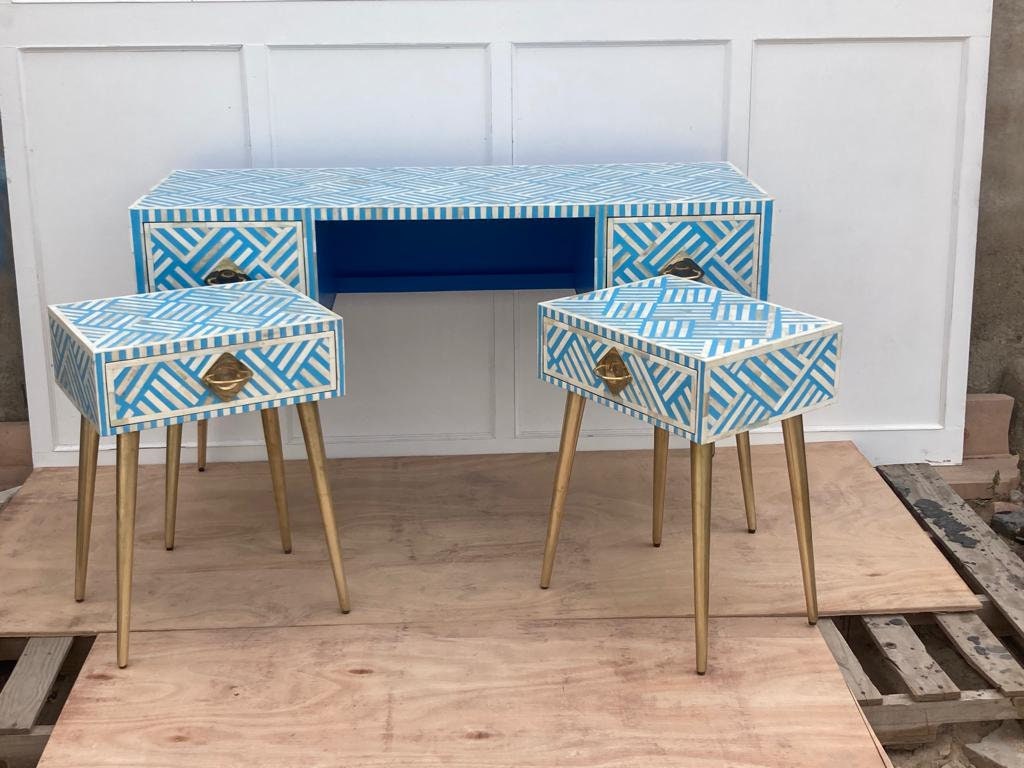 Handmade Bone Inlay Desk Striped Pattern, Luxury Work Desk, Artisan...