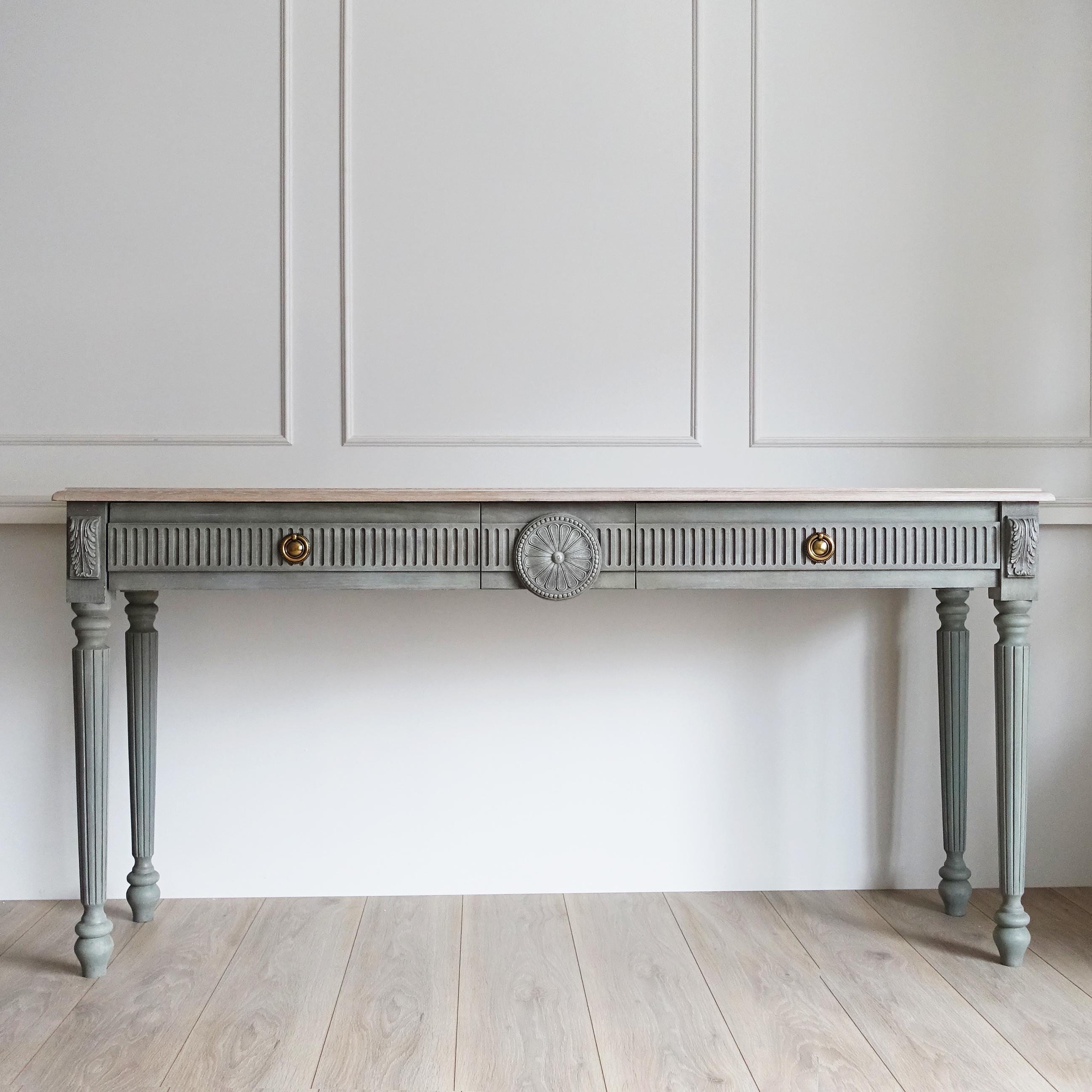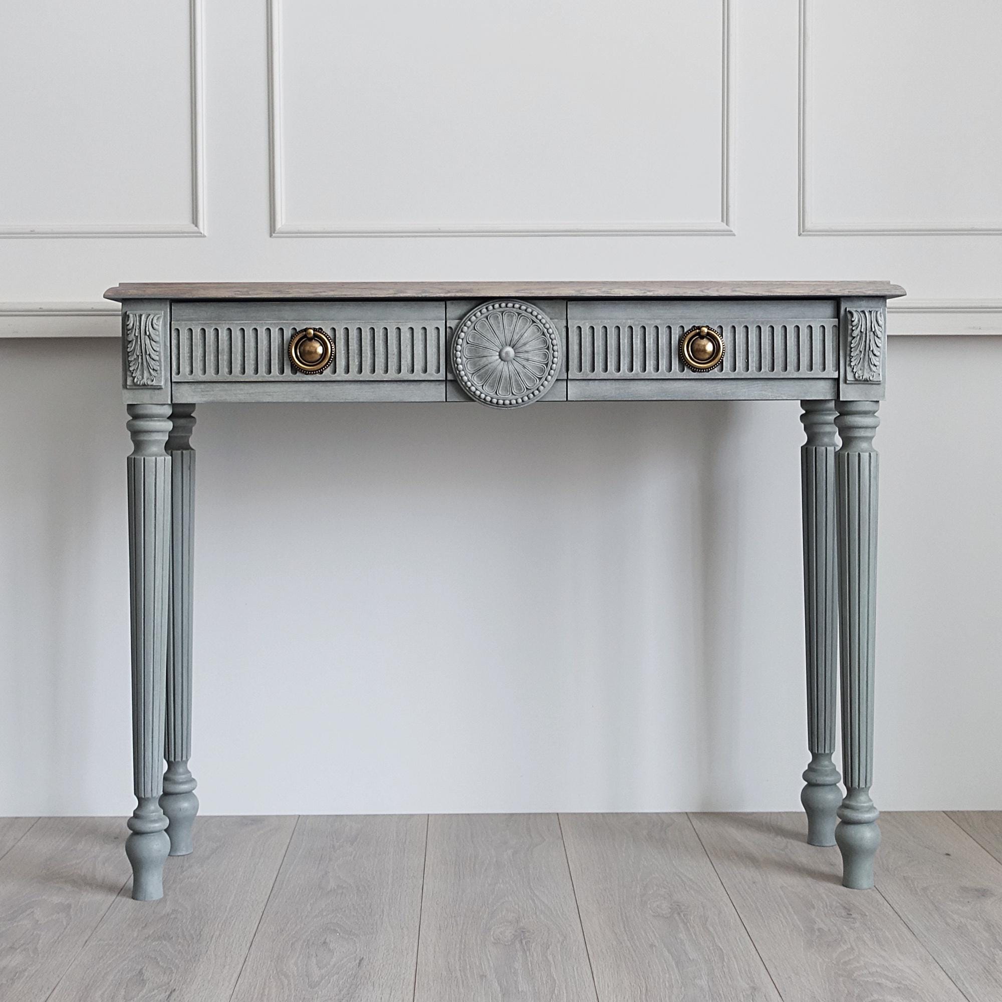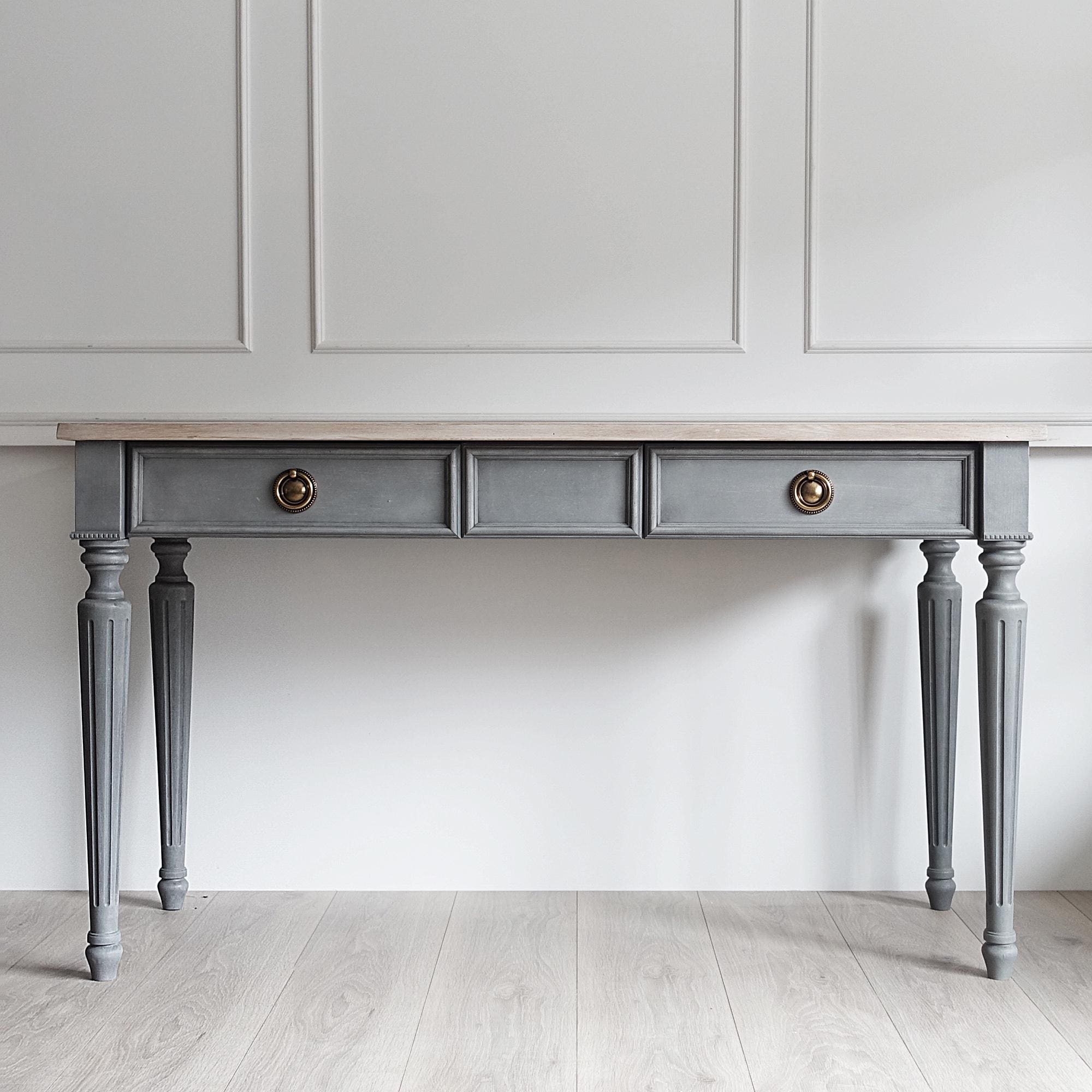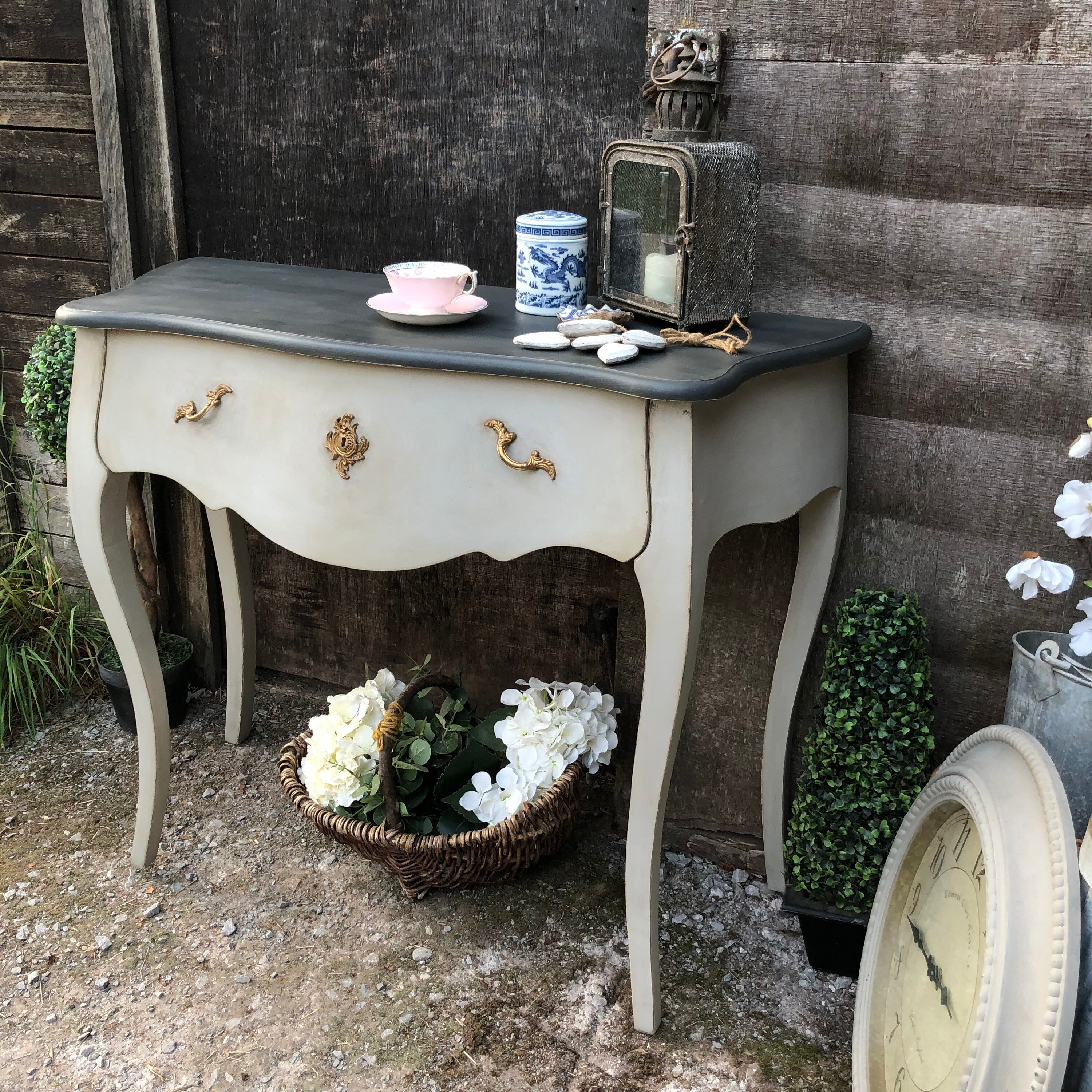 Hand Painted Grey French Country Console Table: Vintage Desk