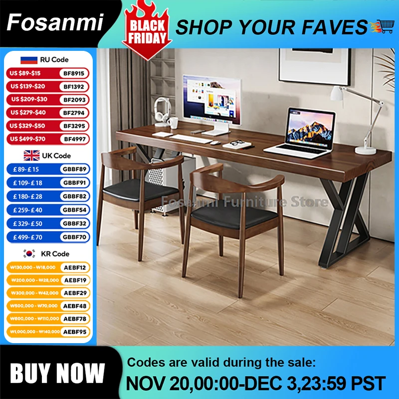Minimalist Long Solid Wood Table for Home Office Large Work Gaming Study Desks for Two Elegant Room ...