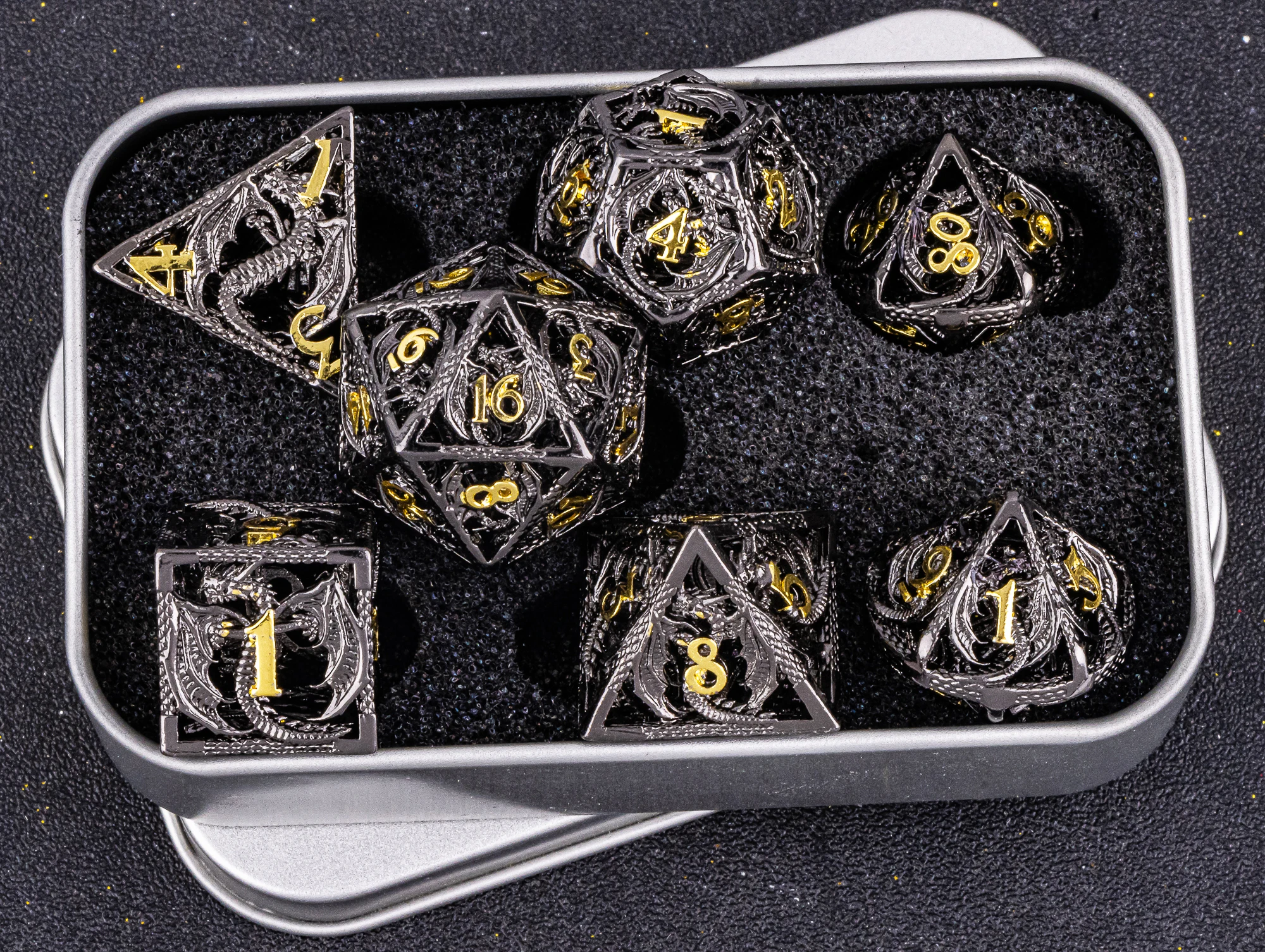 Dragon metal dice set, Hollow polyhedral dice set,Role Playing Metal Dice,Dnd dice set