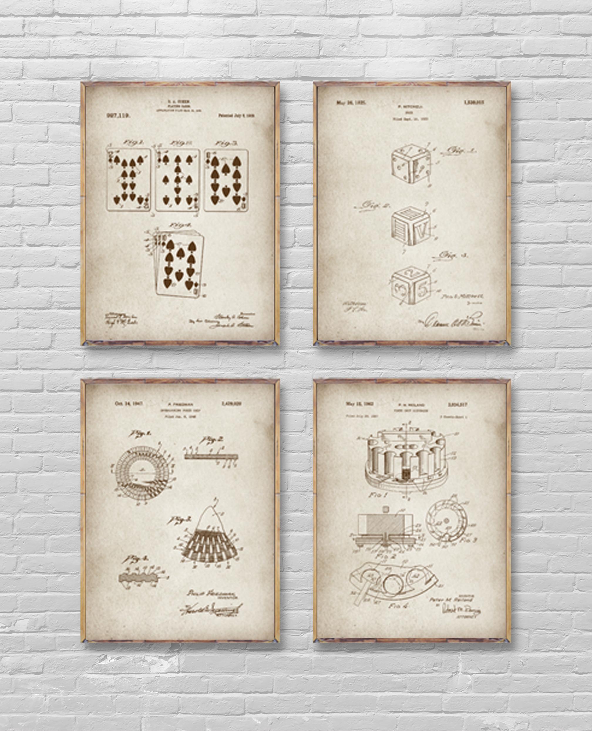 "CASINO patents set of 4 posters, Playing Cards patent print, Dice patent poster, Poker chip pa...