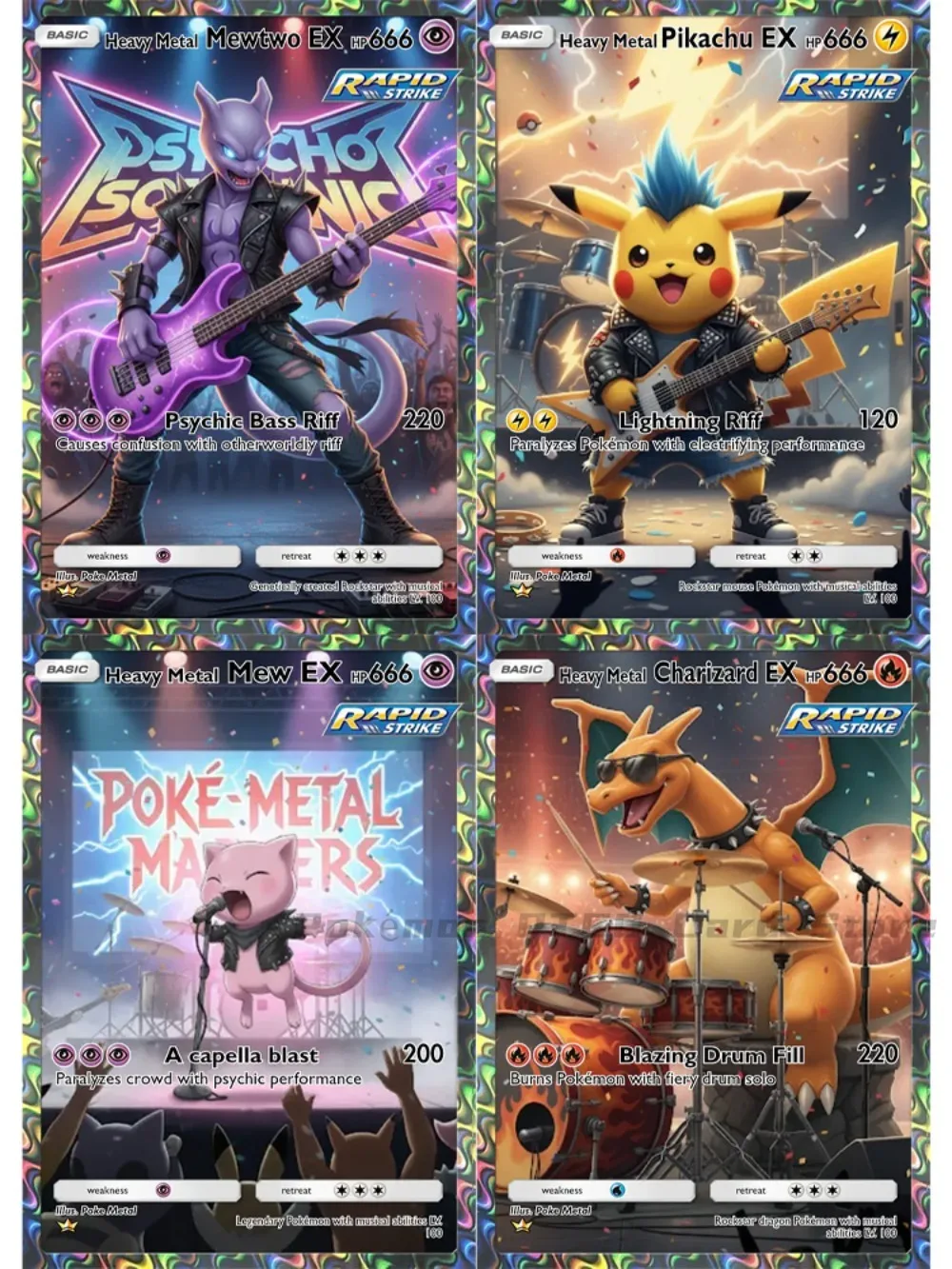 4Pcs Pokemon Cards Rock Series Charizard Mew Mewtwo PTCG Trading Ca...