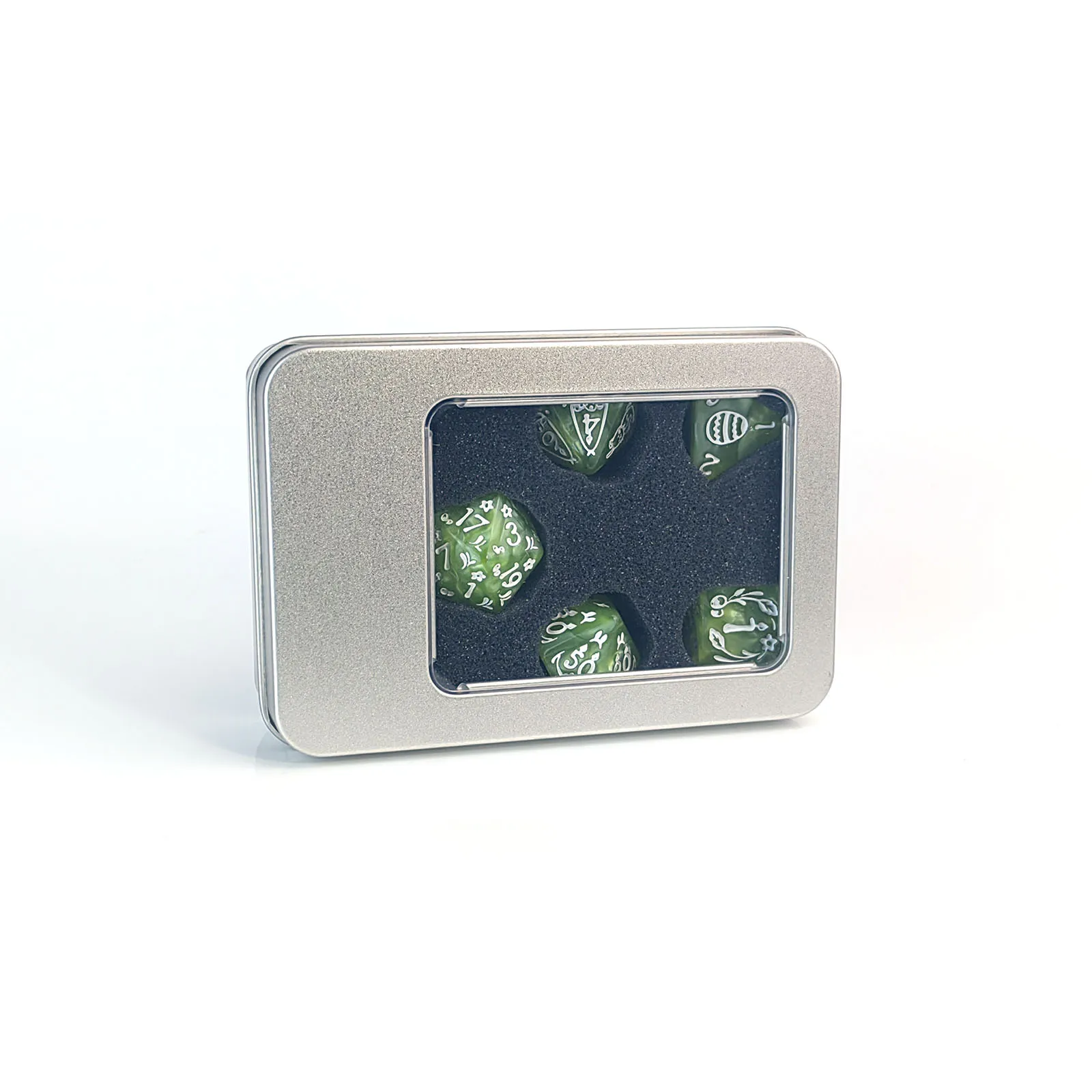 Silver Window Tin Box Polyhedron Dice Set Tin Box for Table Game Gi...