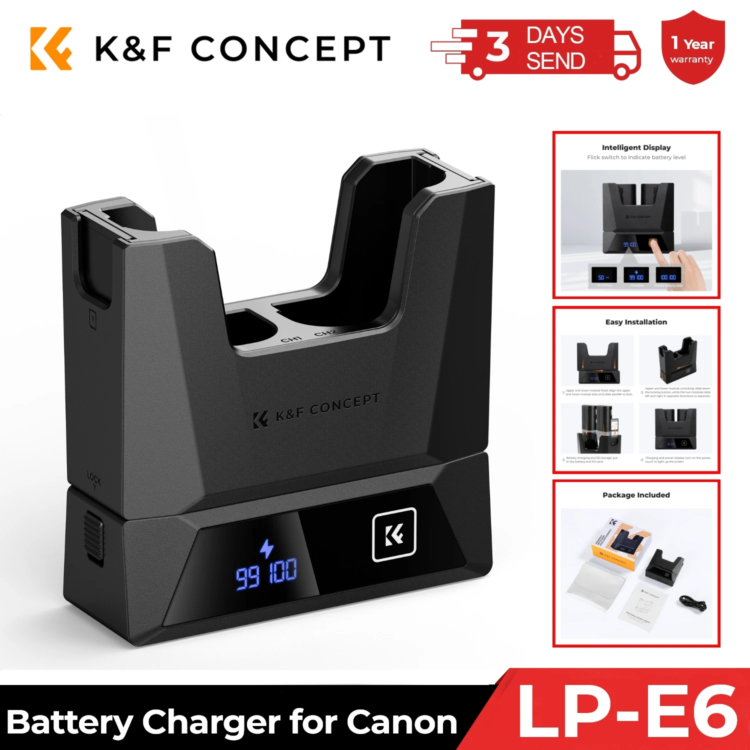 K&F Concept LP-E6NH Charger 18W Fast Dual Portable Battery Char...