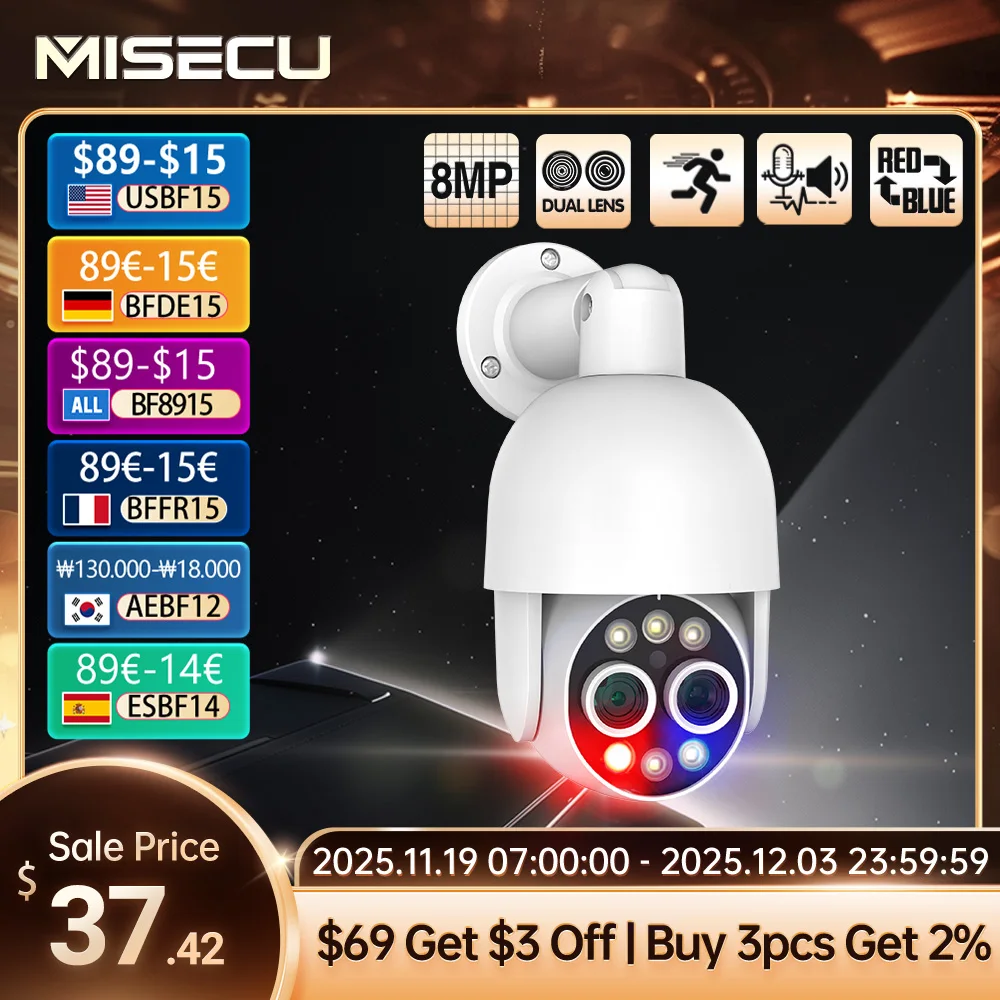 MISECU 4K PTZ 8X Hybrid Zoom 2.8mm 12mm Dual Lens POE IP Camera 8MP Outdoor Human Detect Auto Track ...