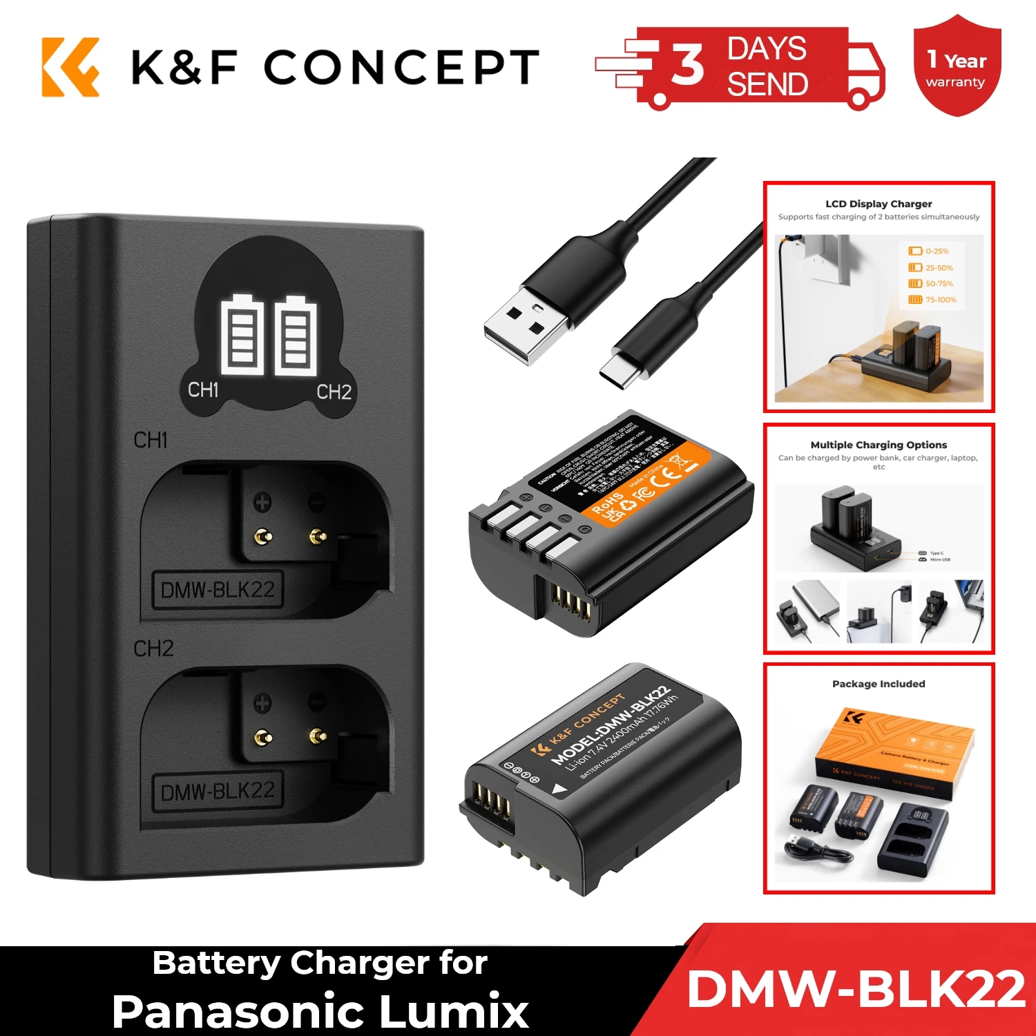 K&F Concept 2 Pack DMW-BLK22 Battery and Dual Slot Charger Set with LCD Screen for Panasonic Lum...