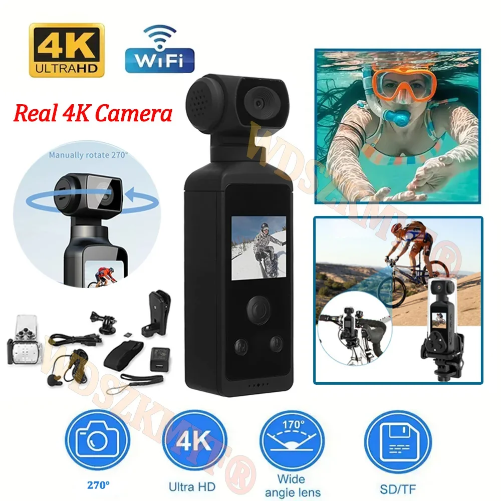 4K WiFi UHD 270 Rotatable Mini Camcorders Outdoor Sports DV With Wa...