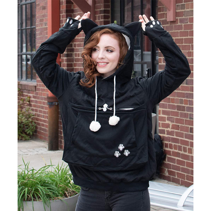 Women's Big Kangaroo Pouch Hoodies,Cute Cat Ear Carriers Pullover,P...