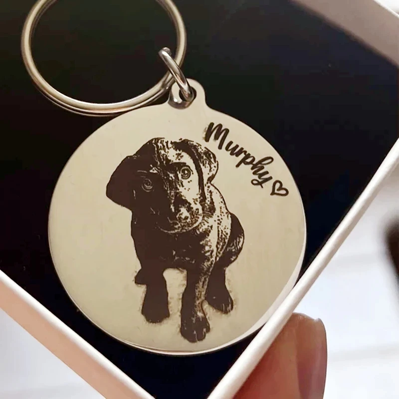 Personalized Dog Photo Keychain Custom Picture Keyring Dog Portrait...