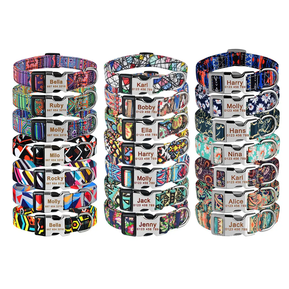 Personalized Dog Puppy ID Tag Nameplate Collar Durable Nylon Pet Dog Buckle Collars Free Engraving N...