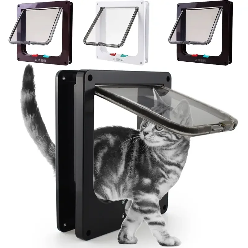 Dog Cat Flap Door with 4 Way Security Lock Flap Door for Dog Cats Kitten ABS Plastic Small Pet Gate ...