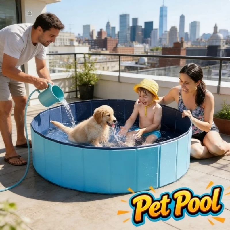 Foldable Pet Swimming Pool Dog Bath Tub, Portable Outdoor Kids Water Pool, Multifunctional Cat Litte...