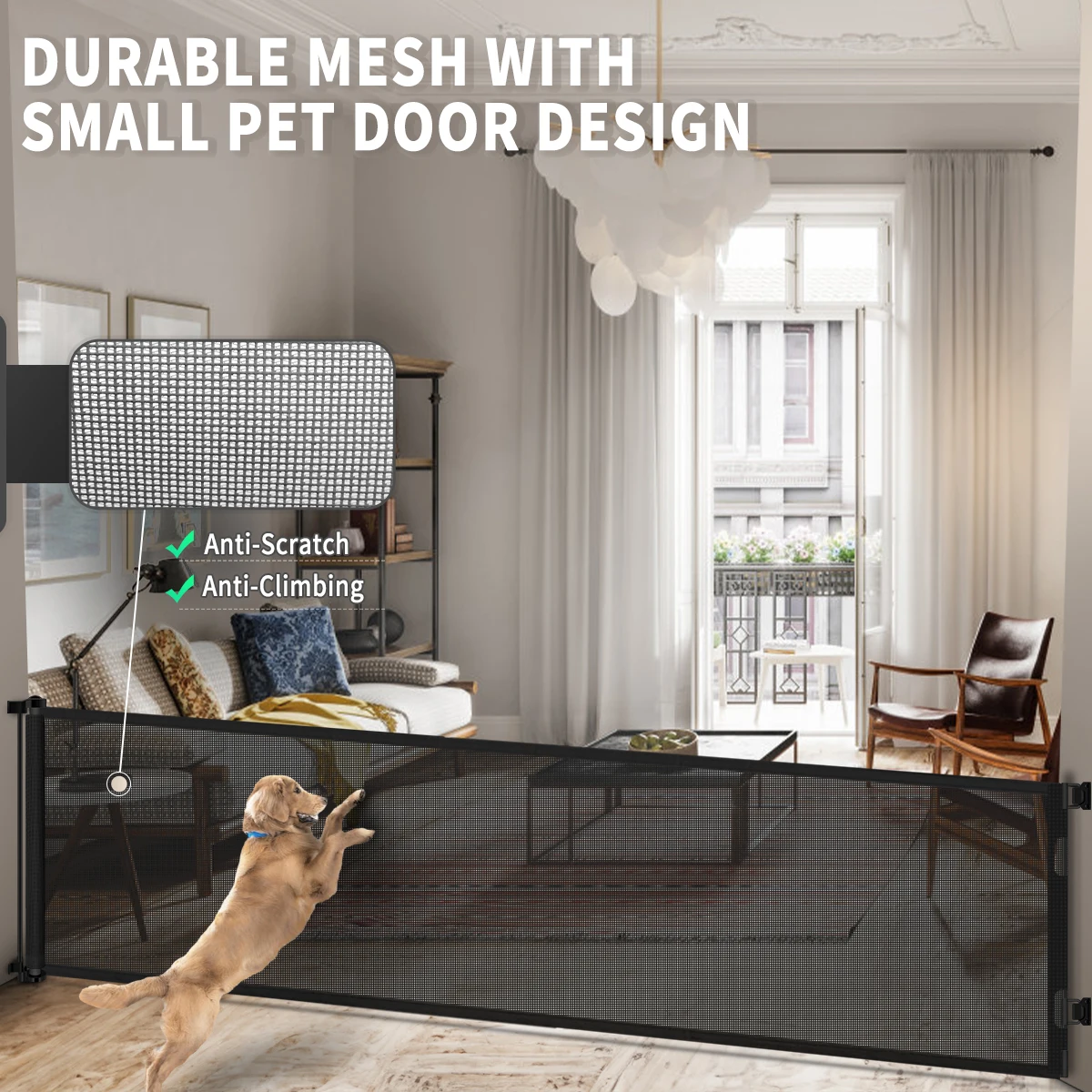 New Dog Gate Retractable Child Crawling Barrier Wide Childproof No ...