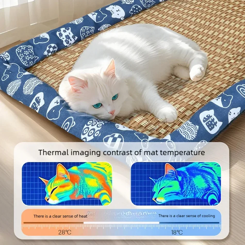 Summer Cooling Rattan Cat Bed, Breathable Nest for Cats & Small Dogs, Pet Cooling Sleeping Mat, ...