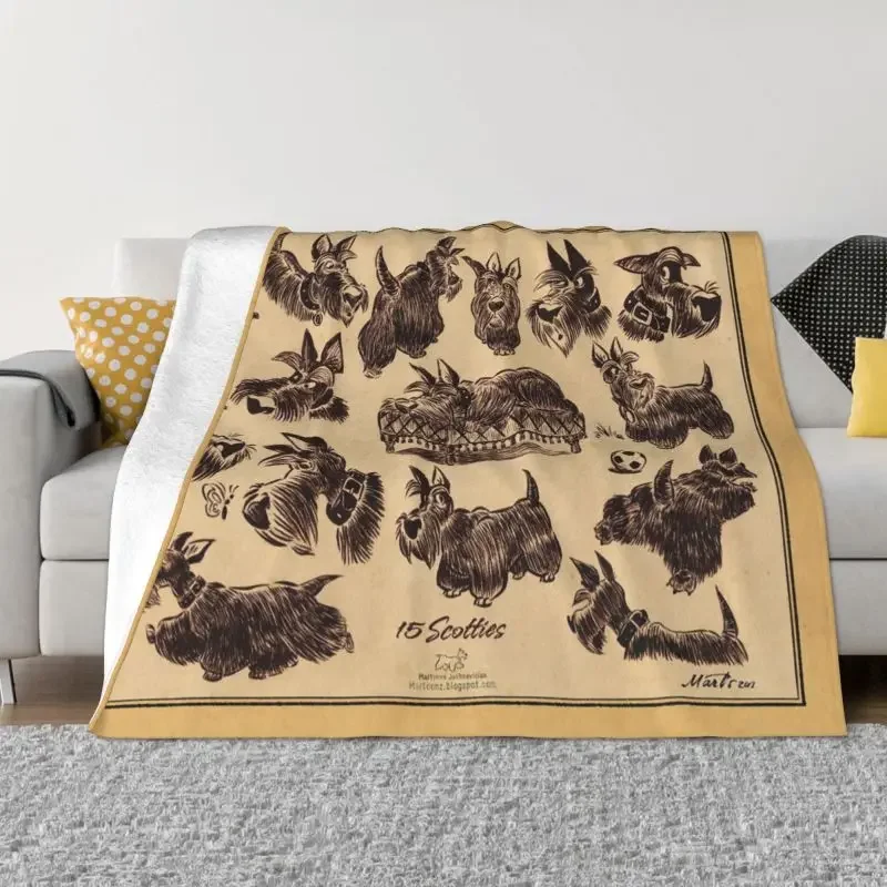 Vintage Scottie Dog Blankets Soft Warm Flannel Scottish Terrier Pet Throw Blanket for Bed Sofa Couch...