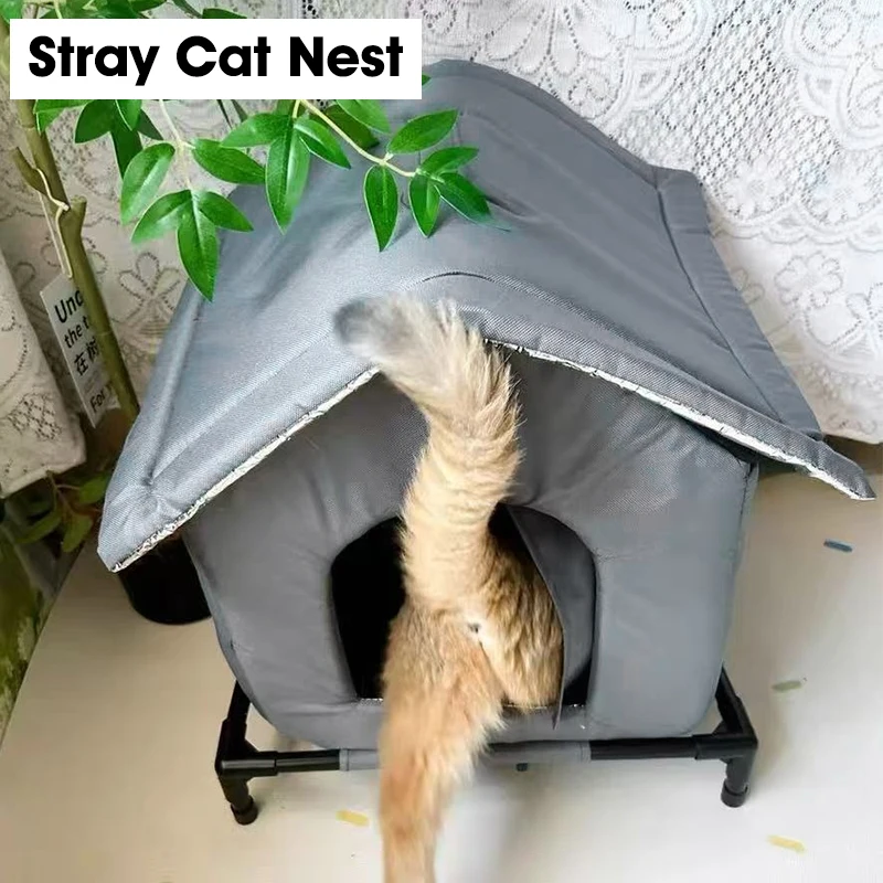 Stray Cat Dog Tent Cat Kennel Oxford Cloth Cat House Waterproof Warm Cat Kennel for Small Pets in Wi...