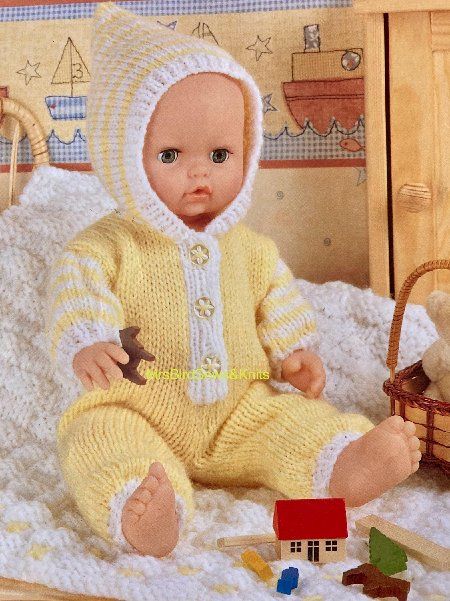 Baby Doll Clothes Knitting Pattern: Hooded Onesie & Blanket (12...