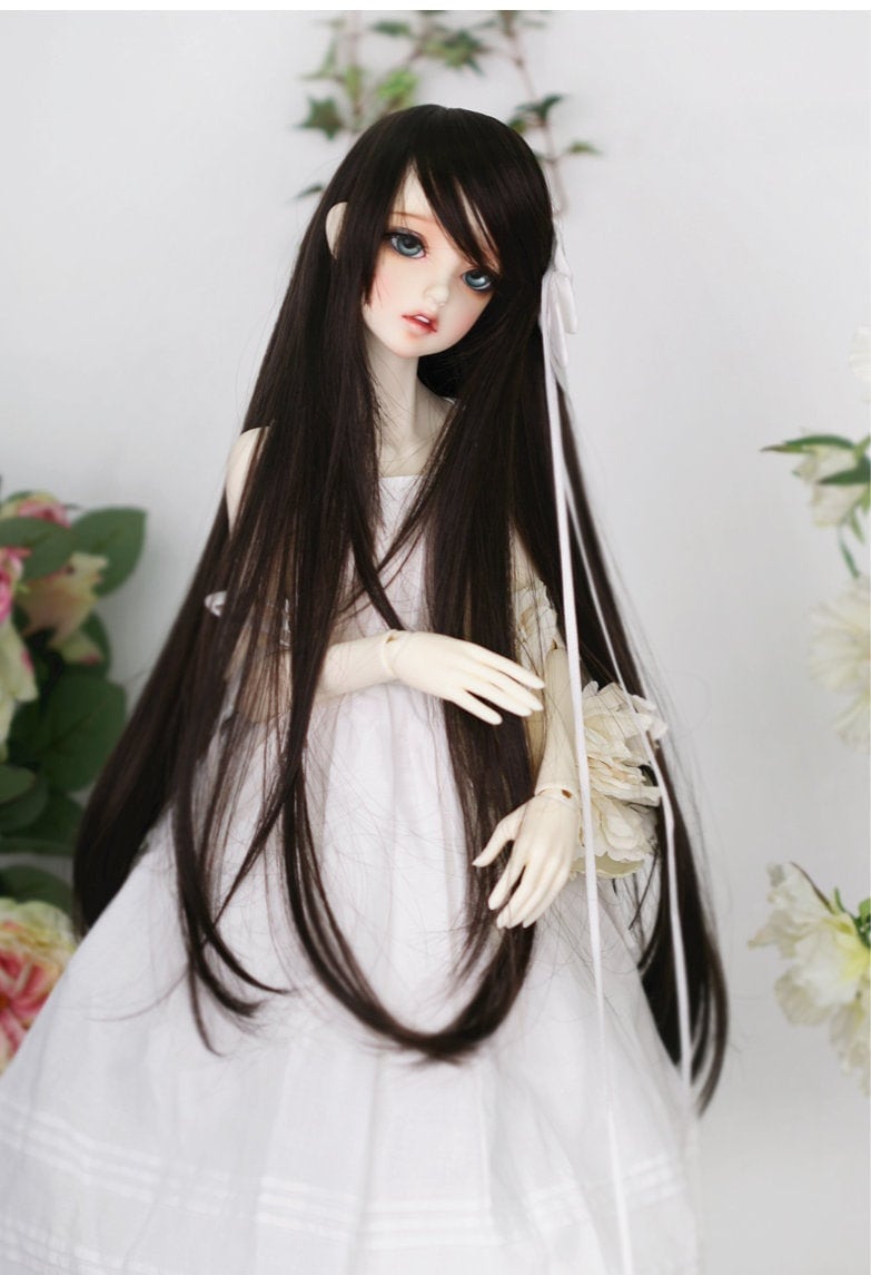 Long Black Straight BJD Doll Wig,For 9-10 inch 8-9 inch 7-8 inch 6-...