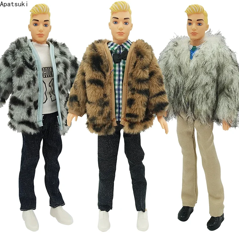 Faux Fur 1/6 Doll Clothes Set For Ken Boy Doll Outfits Jacket T-shirt Pants Shoes Glasses For Barbie...