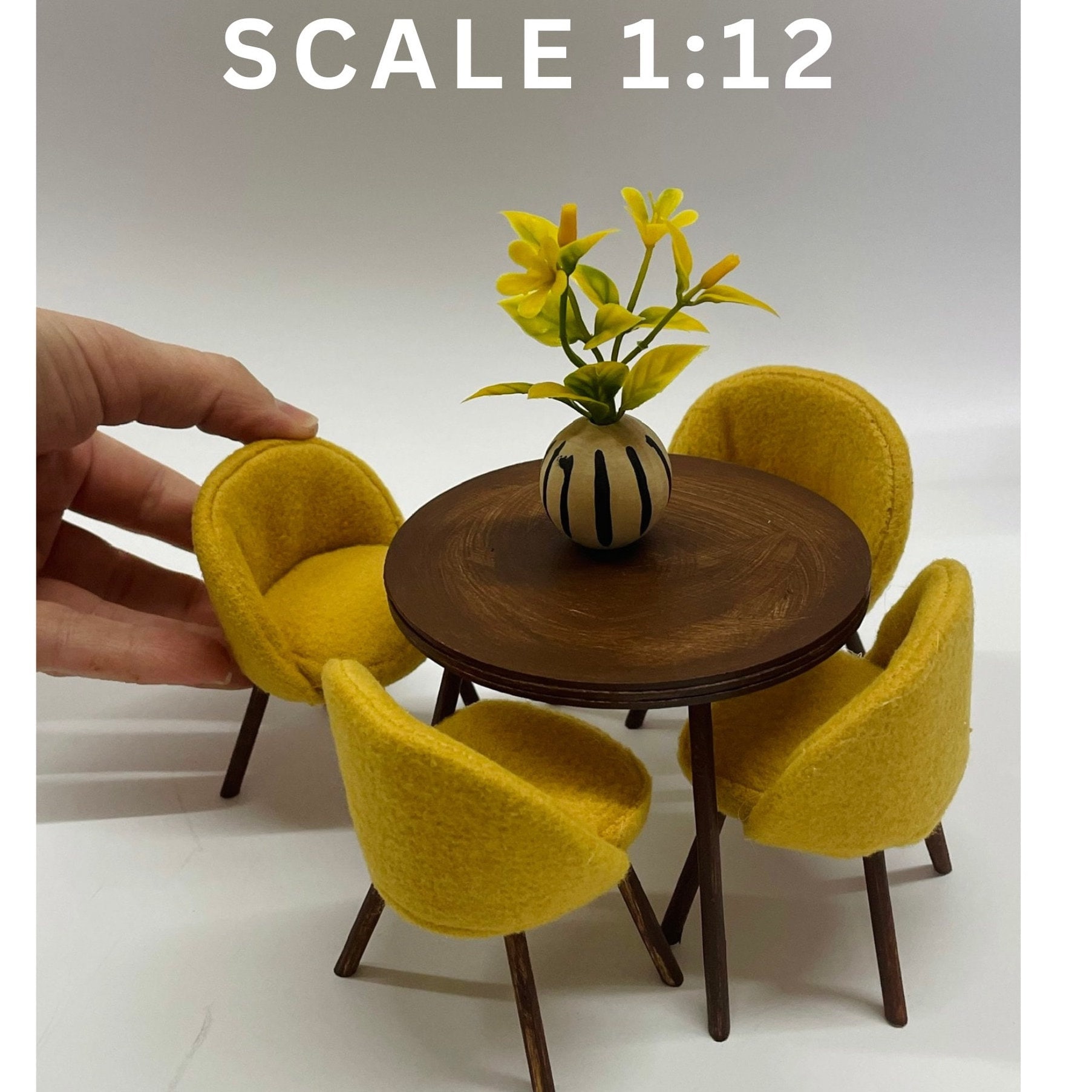 "Add Realism to Your Dollhouse Dining Room! Each piece of this 1:12 scale table and chair set i...