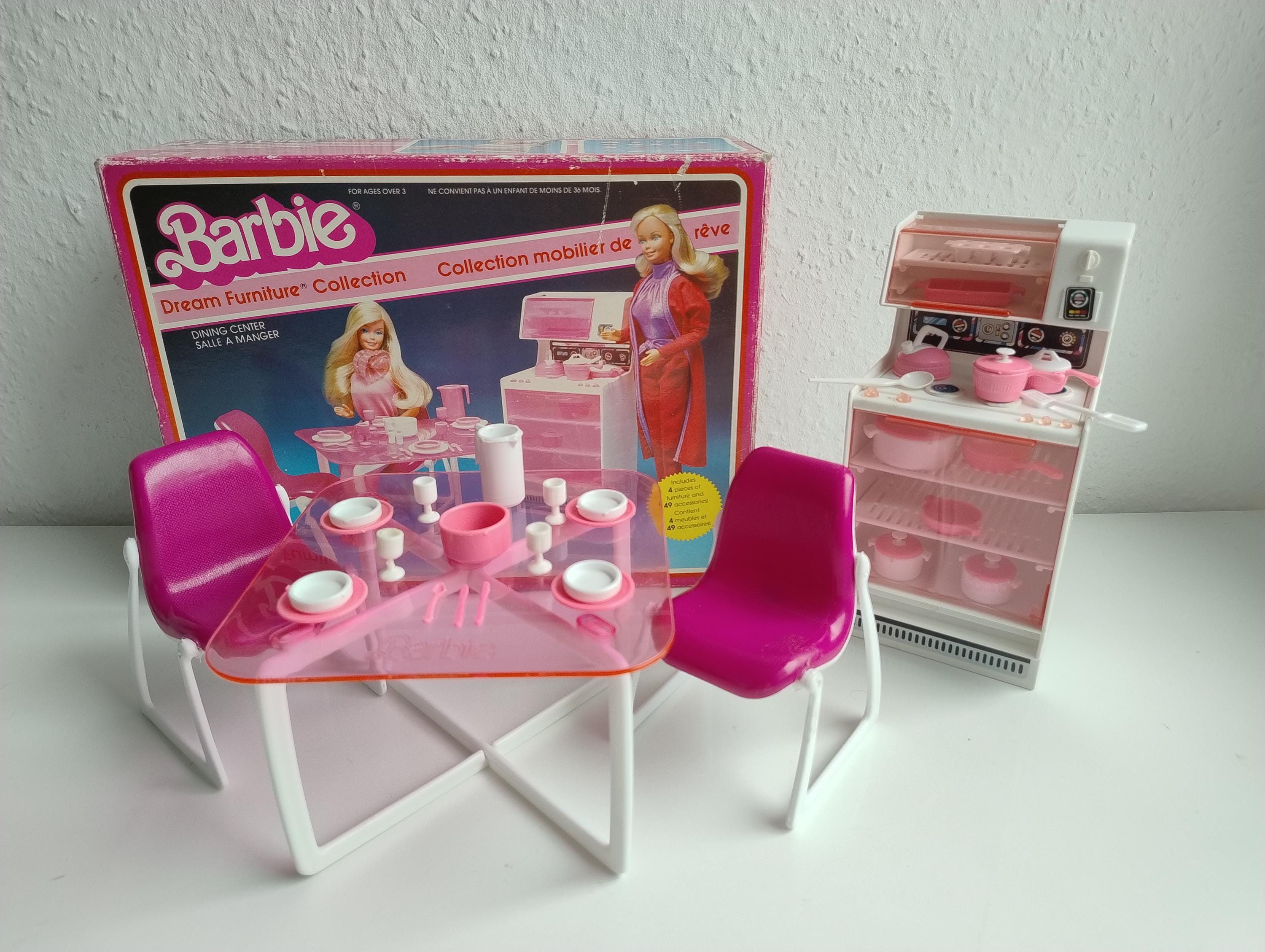 Barbie Dream Furniture Collection Dining Center Table 2 Chairs and Stove Dining room furniture Dinin...