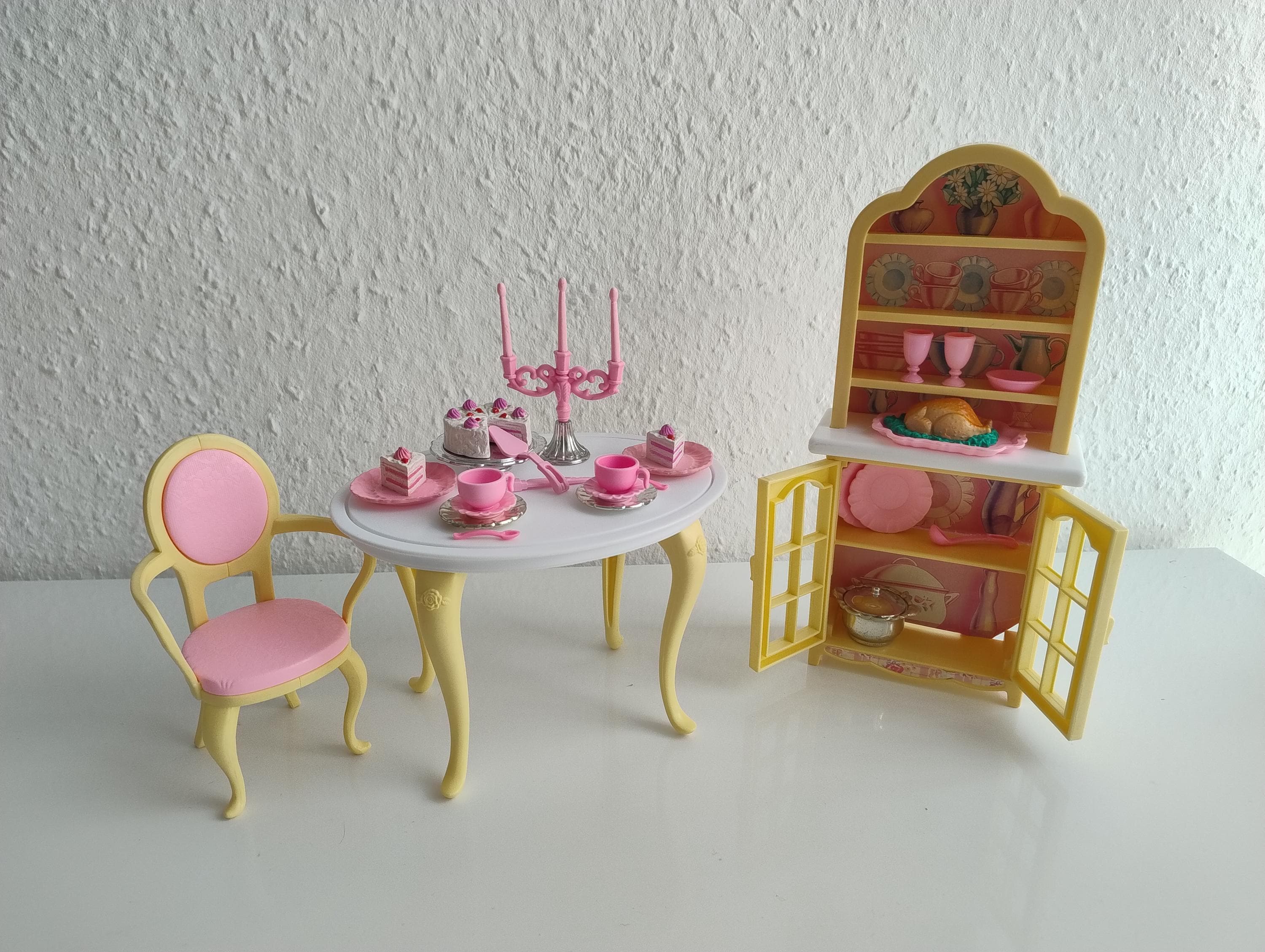 Barbie My Folding Pretty House Dining Room Dining Room Display Cabinet Wall Cabinet Dining Table and...