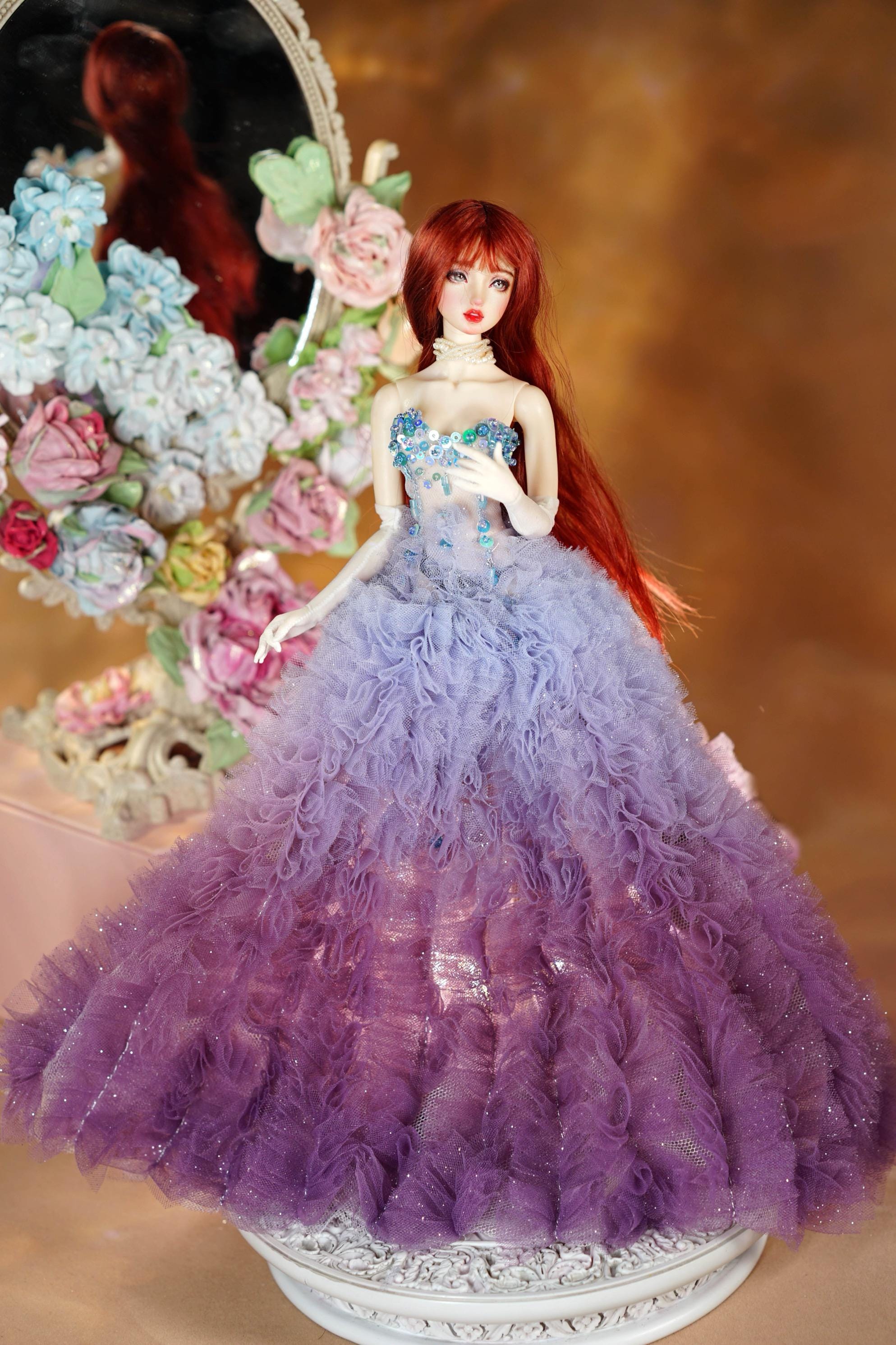 Black ball gown for Blythe Doll 30 cm, glittery doll dress. Dress f...