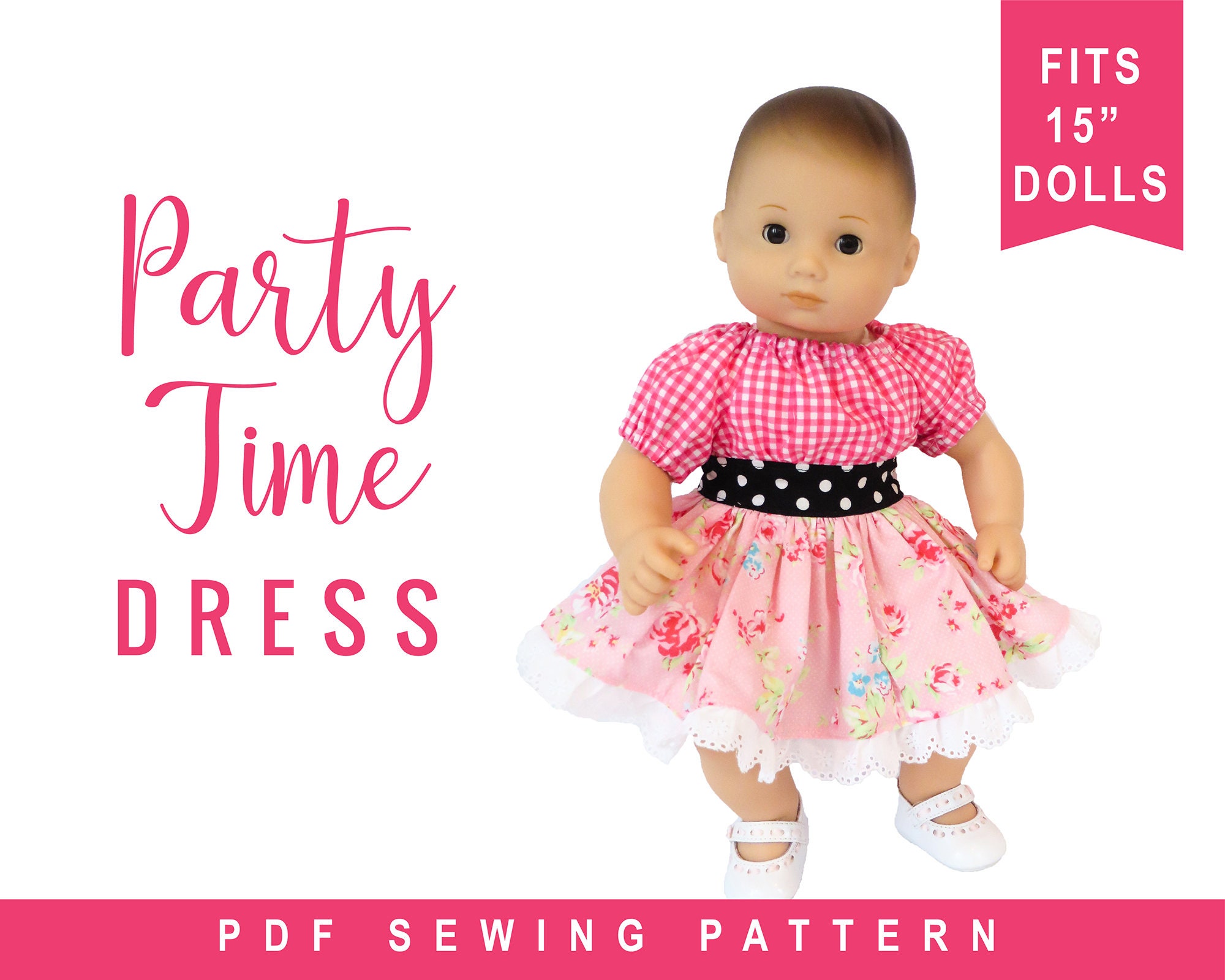 Bitty Baby Doll Clothes Sewing Pattern - 15 inch Baby Party Time Pe...