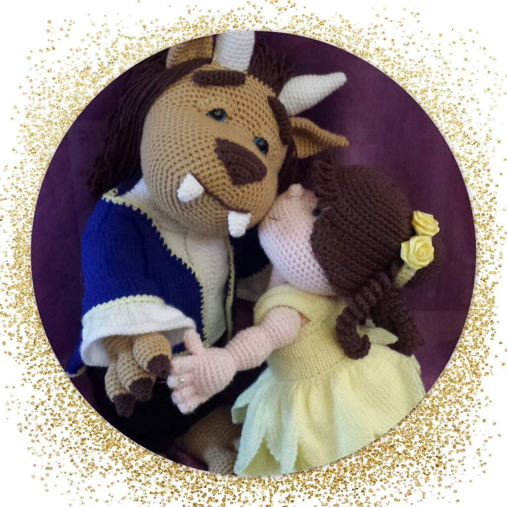 Beauty & The Beast - Crochet doll and beast with knitted clothi...