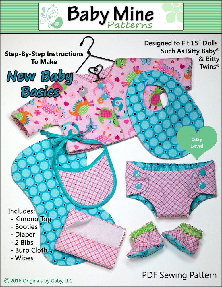 New Baby Basics 15 Inch Doll Clothes Pattern Fits Baby Dolls such a...