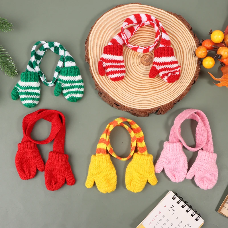 1Pc Mini Knitting Scarf Hat Glove Doll Headwear Dollhouse Christmas Home Scene Decor Small Pet Costu...