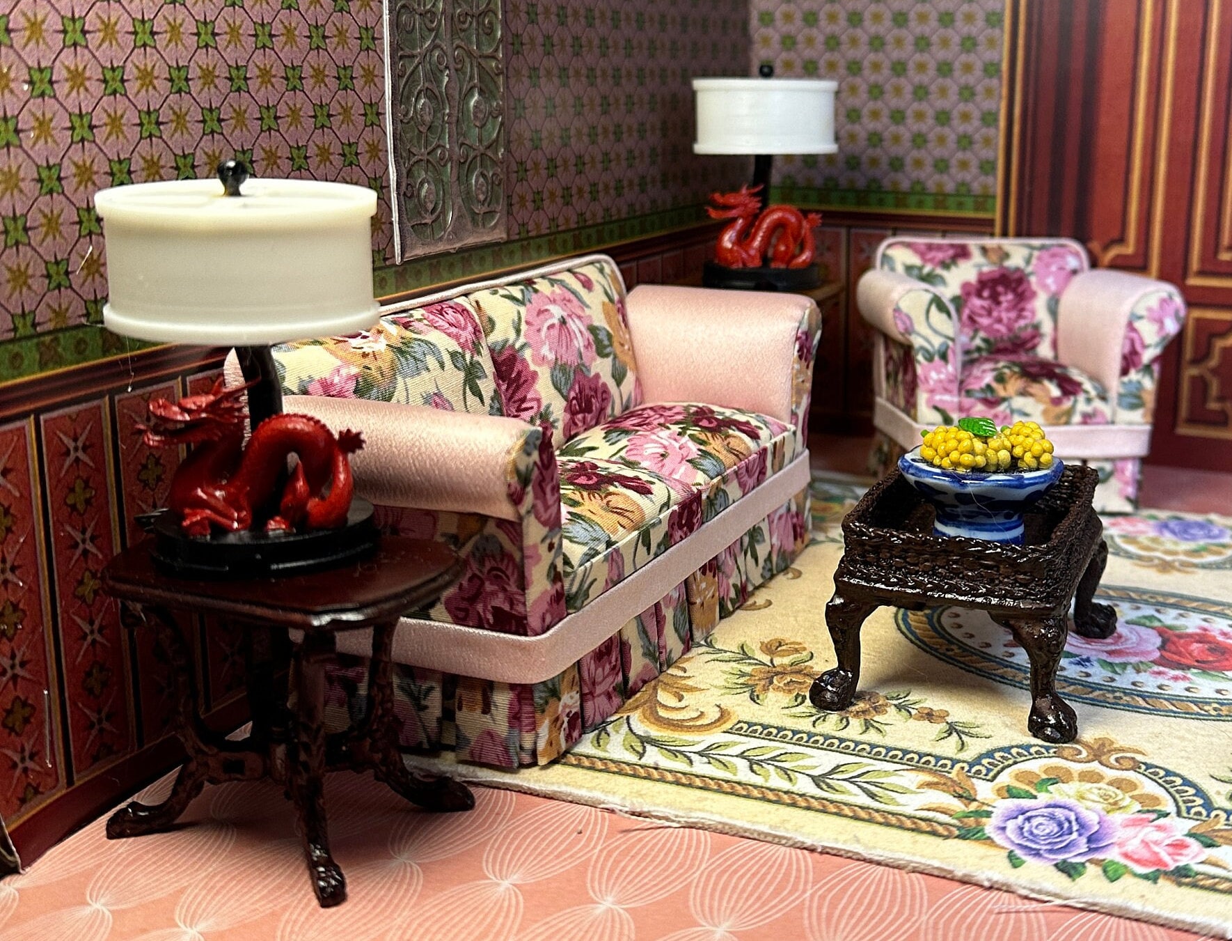 Miniature Dollhouse Decor Replica 1930s Modern Era Sofa Chesterfiel...
