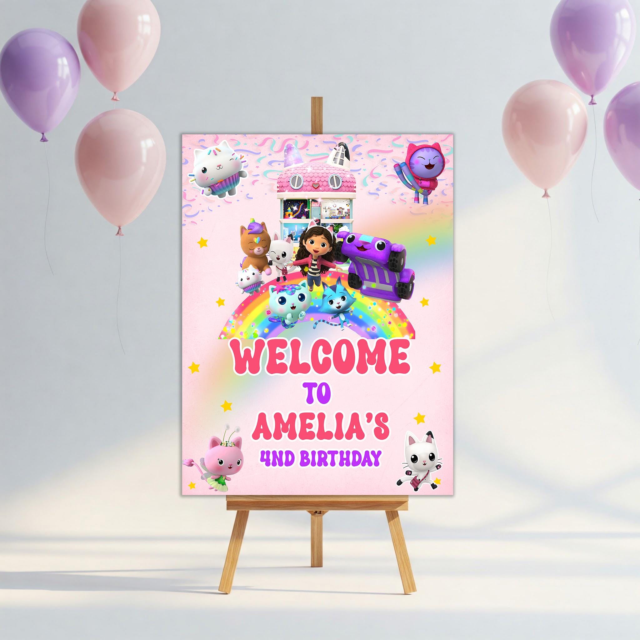 Gabby's Dollhouse Welcome Sign: Birthday Party Banner (Canva Templa...