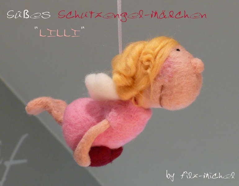 "This sugar-sweet blonde guardian angel Girl \"Lilli\" with pink dress, carries her h...