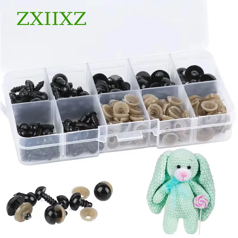 Zxiixz 100Pcs 6-12mm DIY Doll Eyes Black Plastic Crafts Safety Eyes for Teddy Bear Soft Toy Animal D...