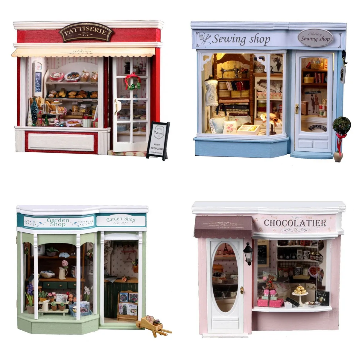 DIY Wooden Doll Houses Bakery Miniature Kit With Furniture Sewing Coffee Shop Dollhouse Chocolate Ca...