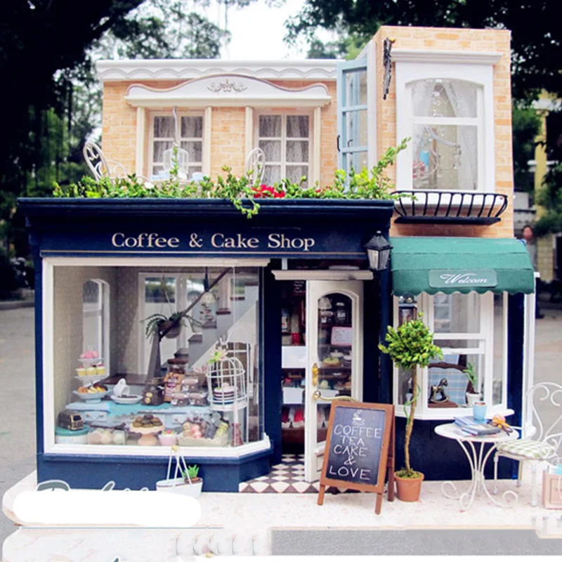 DIY Wooden Dollhouse Miniature Building Kit Chocolate Coffee Shop Casa Doll House with Furniture Flo...