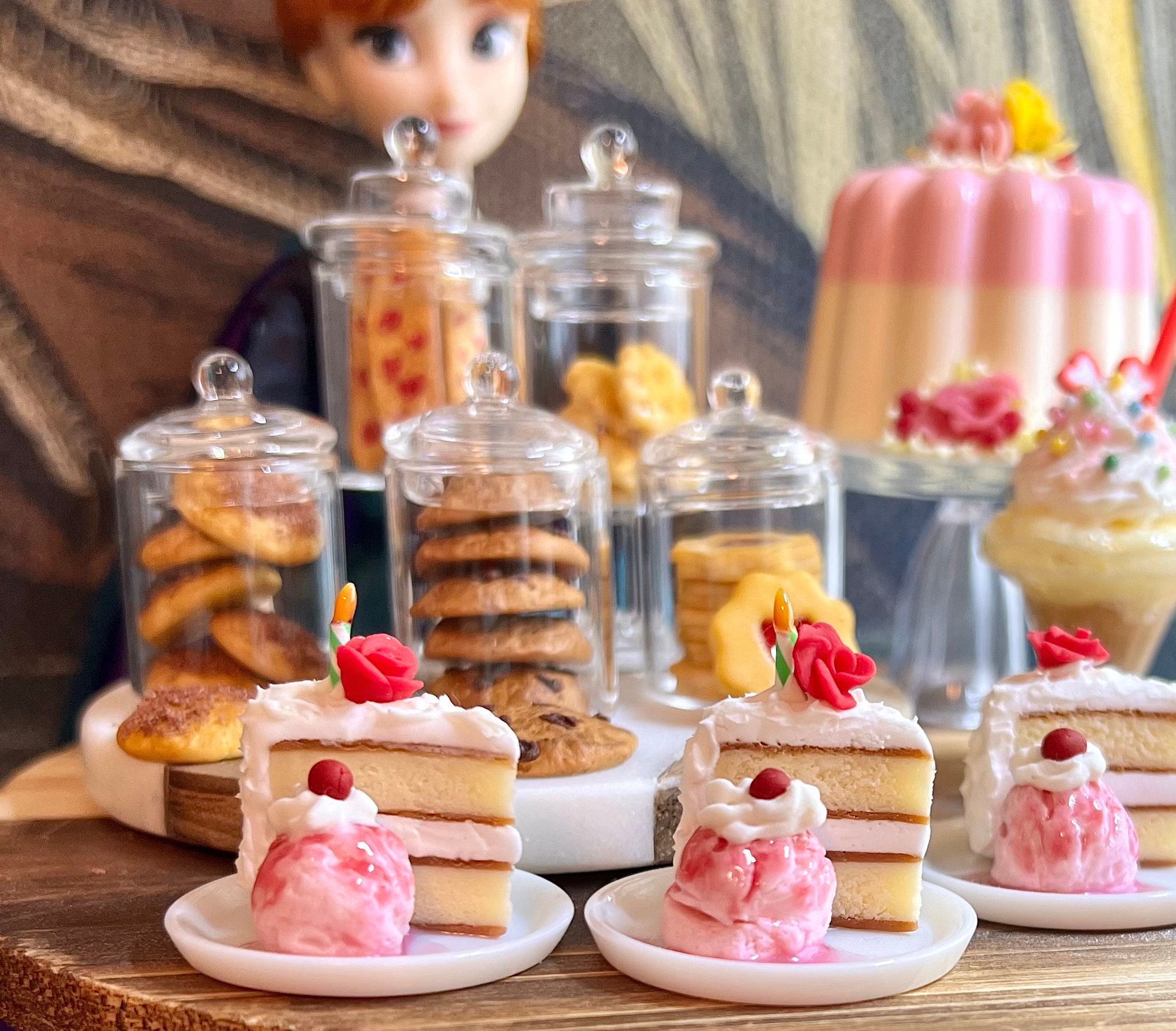 Miniature cakes, cookies and shakes for Blythe and Barbie dolls. 1:6 scale play food for 12 inch dol...
