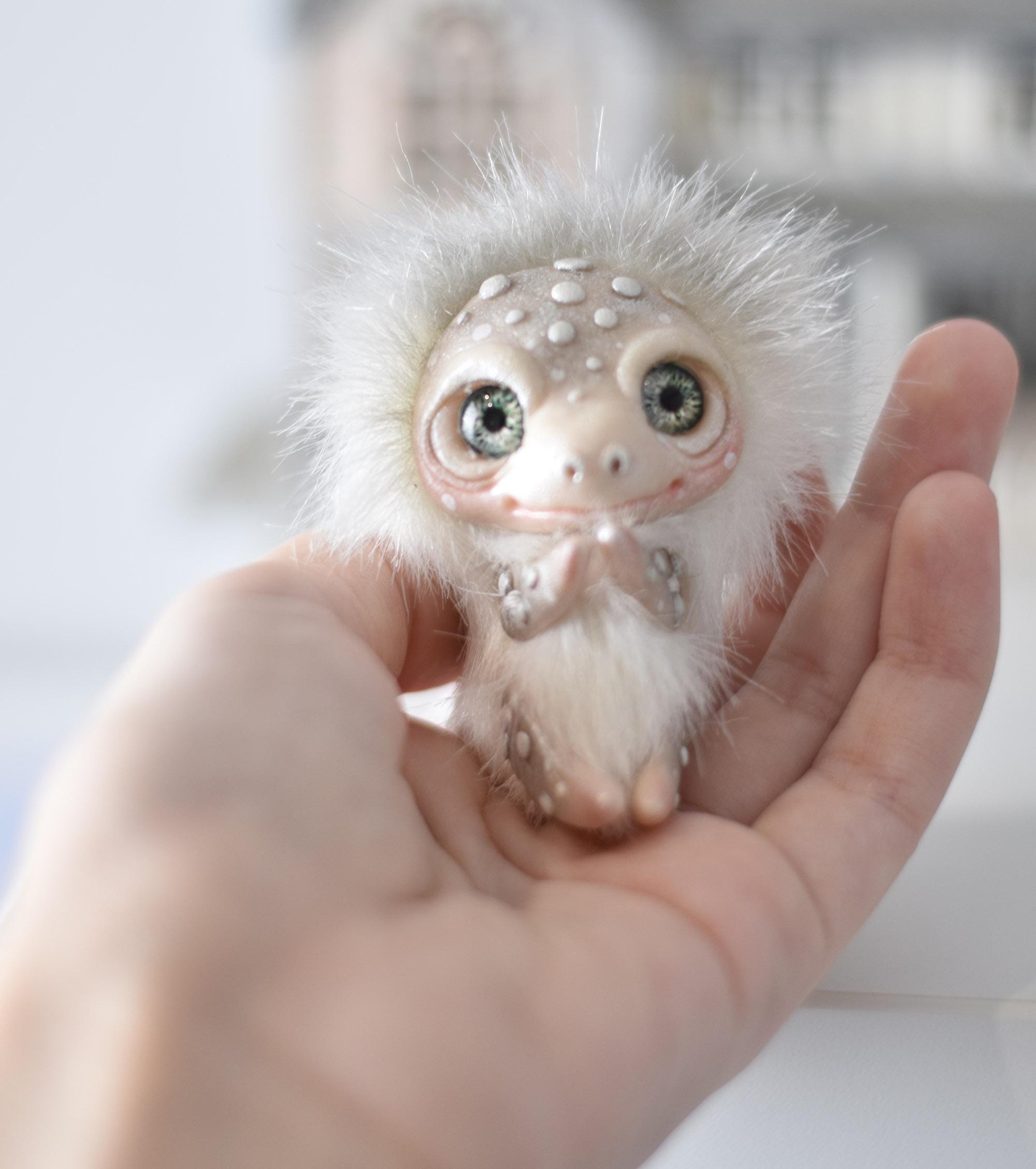 Dinosaur ooak creature length about 2.4 inches. Glass eyes. body textile filler sintepon. Painted wi...