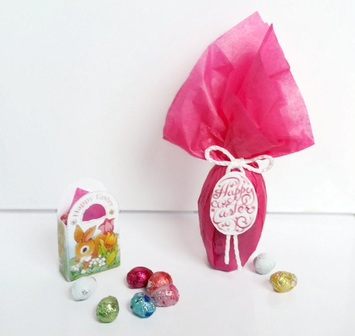 This beautiful Easter set of consists of a large Easter egg wrapped in tissue paper and a pink Easte...