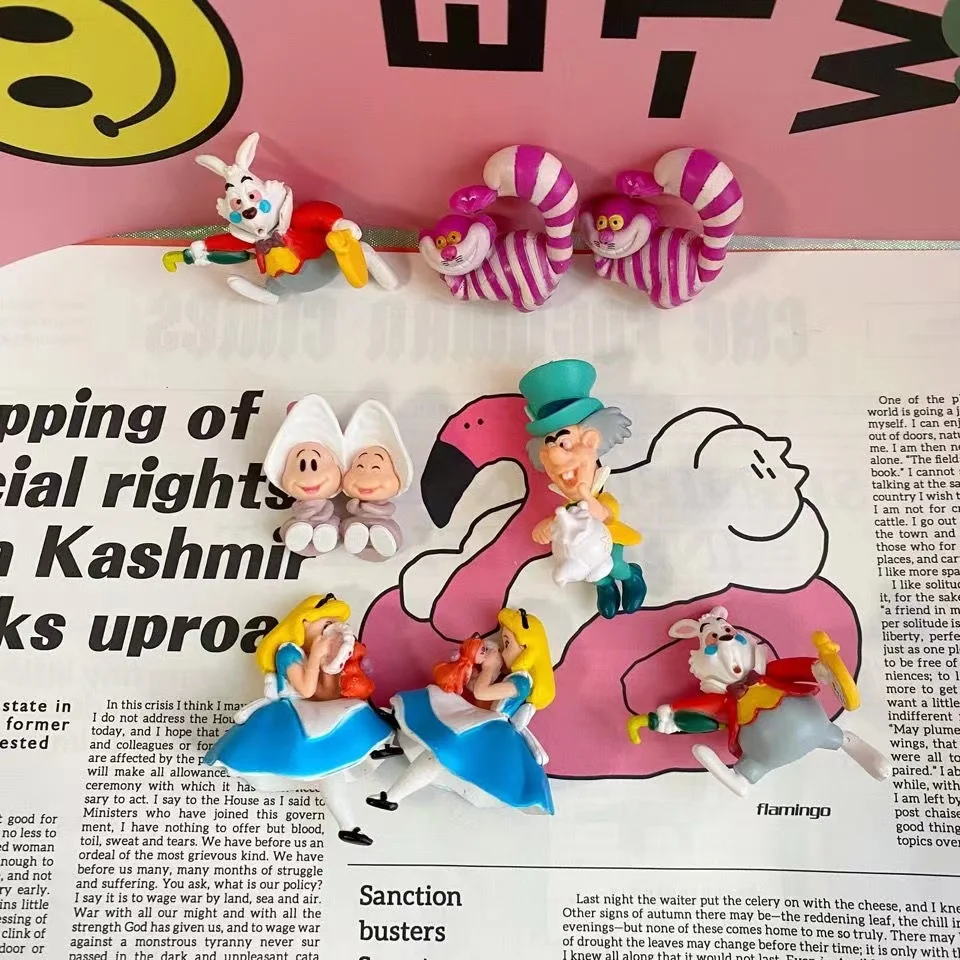 Disney Alice in Wonderland The Edge of Cup Alice Mad Hatter Cheshire Cat White Rabbit PVC Figures Co...