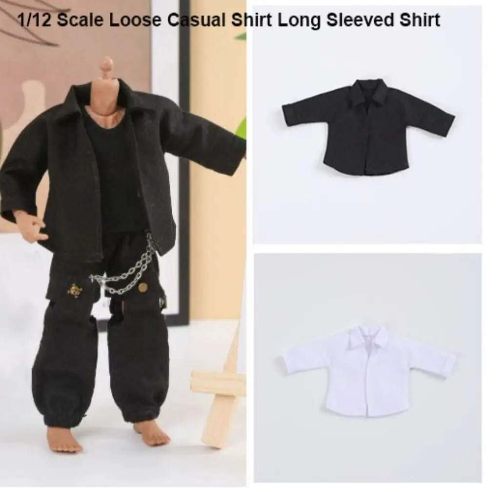 Solid Color 1/12 Scale Casual Shirt Loose Fashion Long Sleeved Shirt Cute Black/White for 6'' Figure...