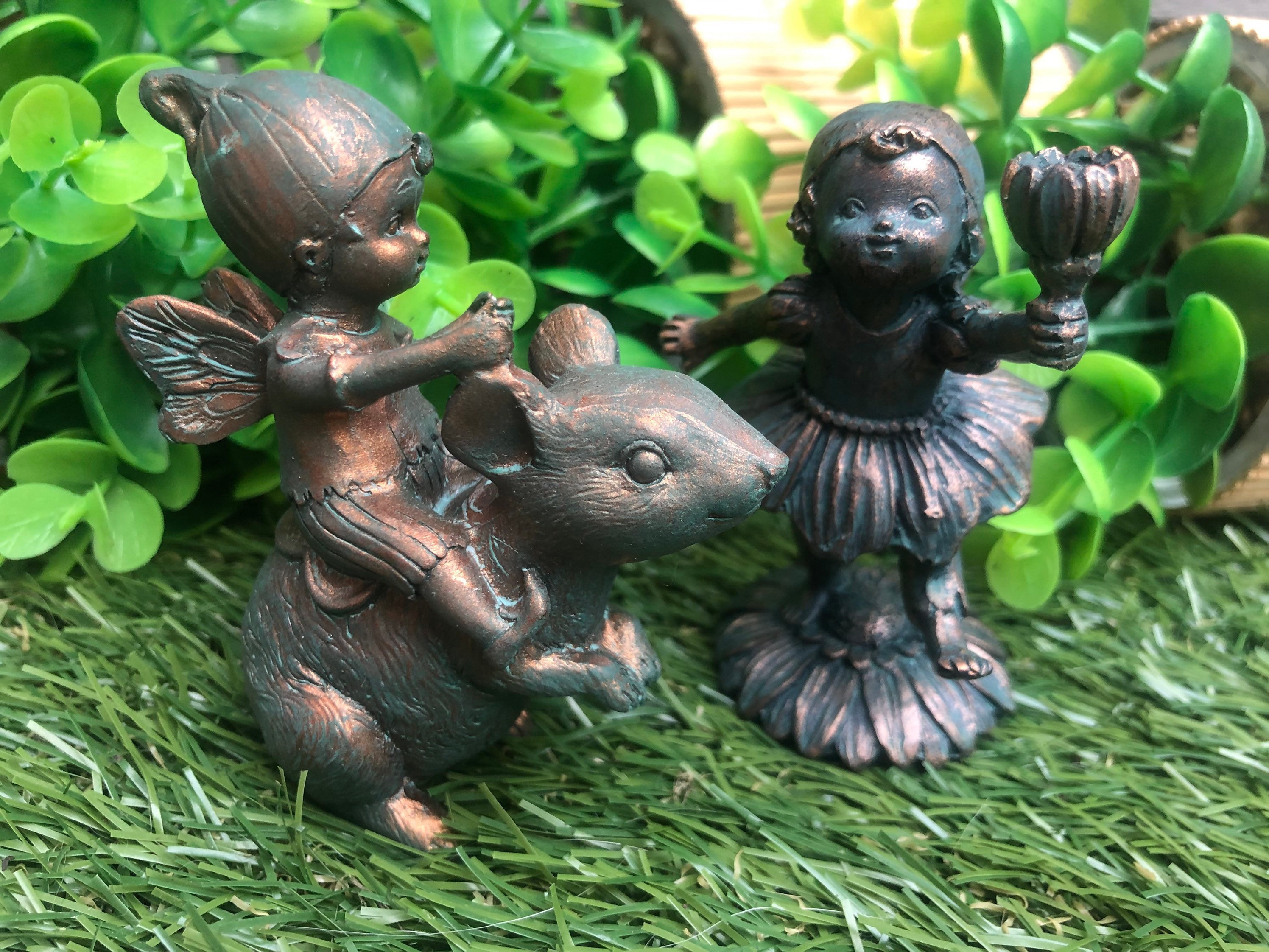 Miniature Fairy Mouse & Flower Fairy Set, Fairy Garden Set, Fai...