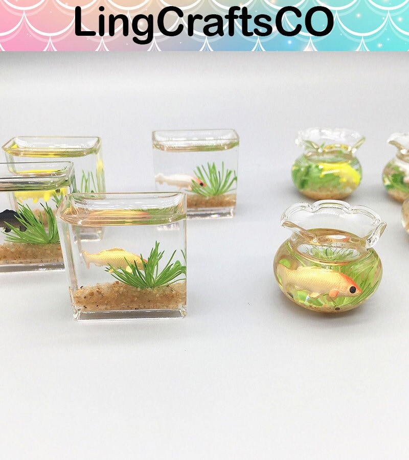 Dollhouse Fish Tank, Miniature Round and Square Goldfish Tank, Imit...