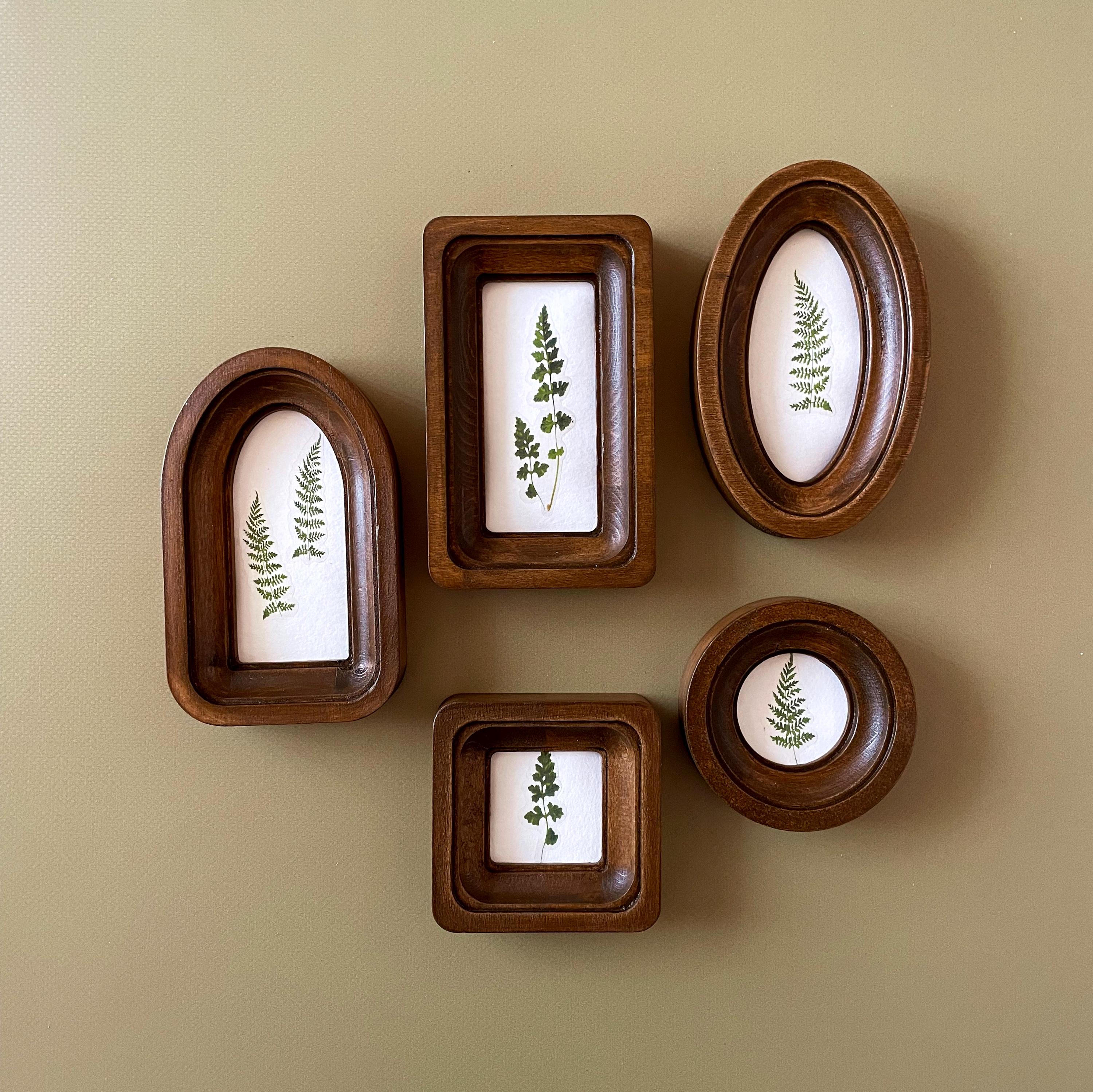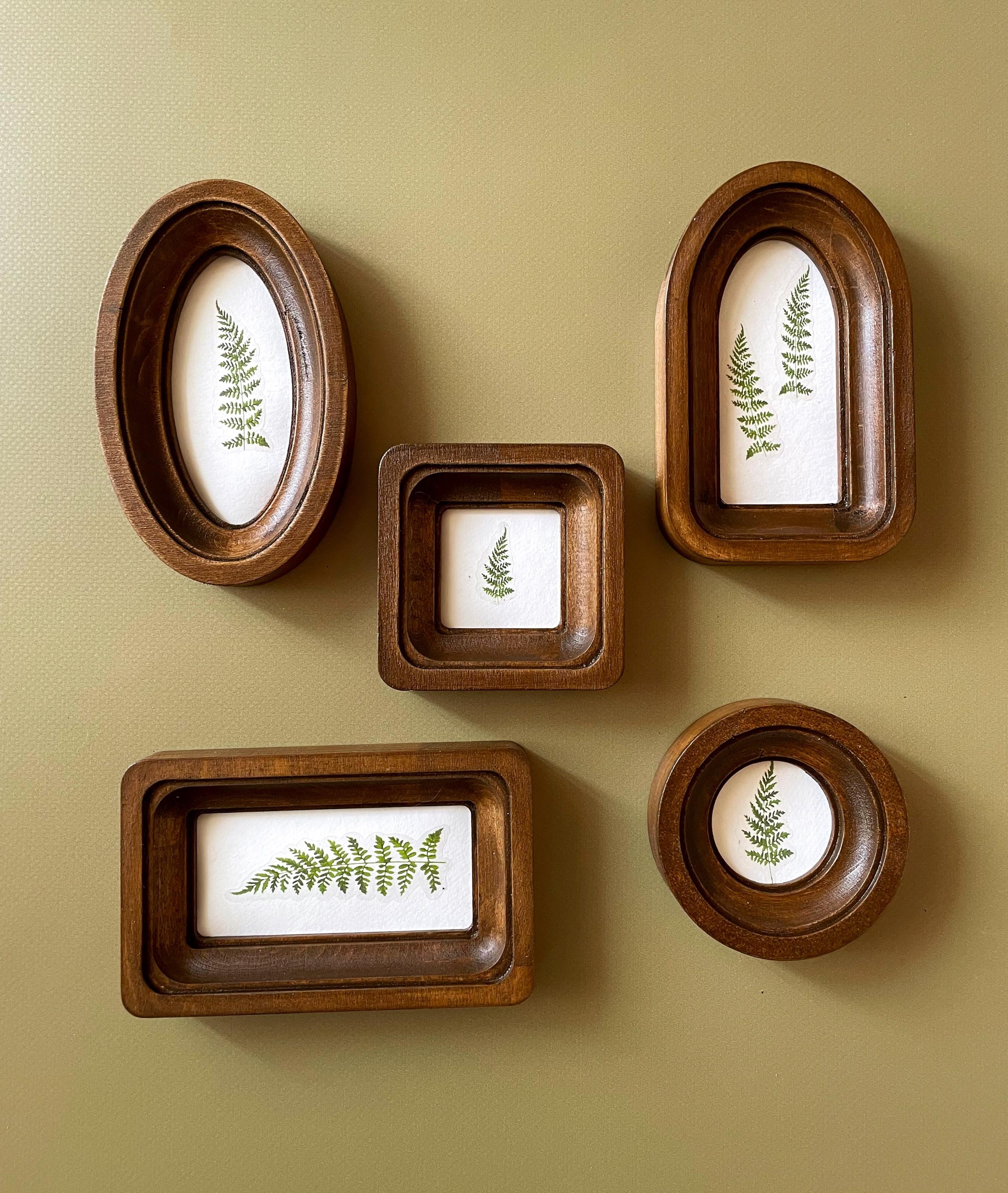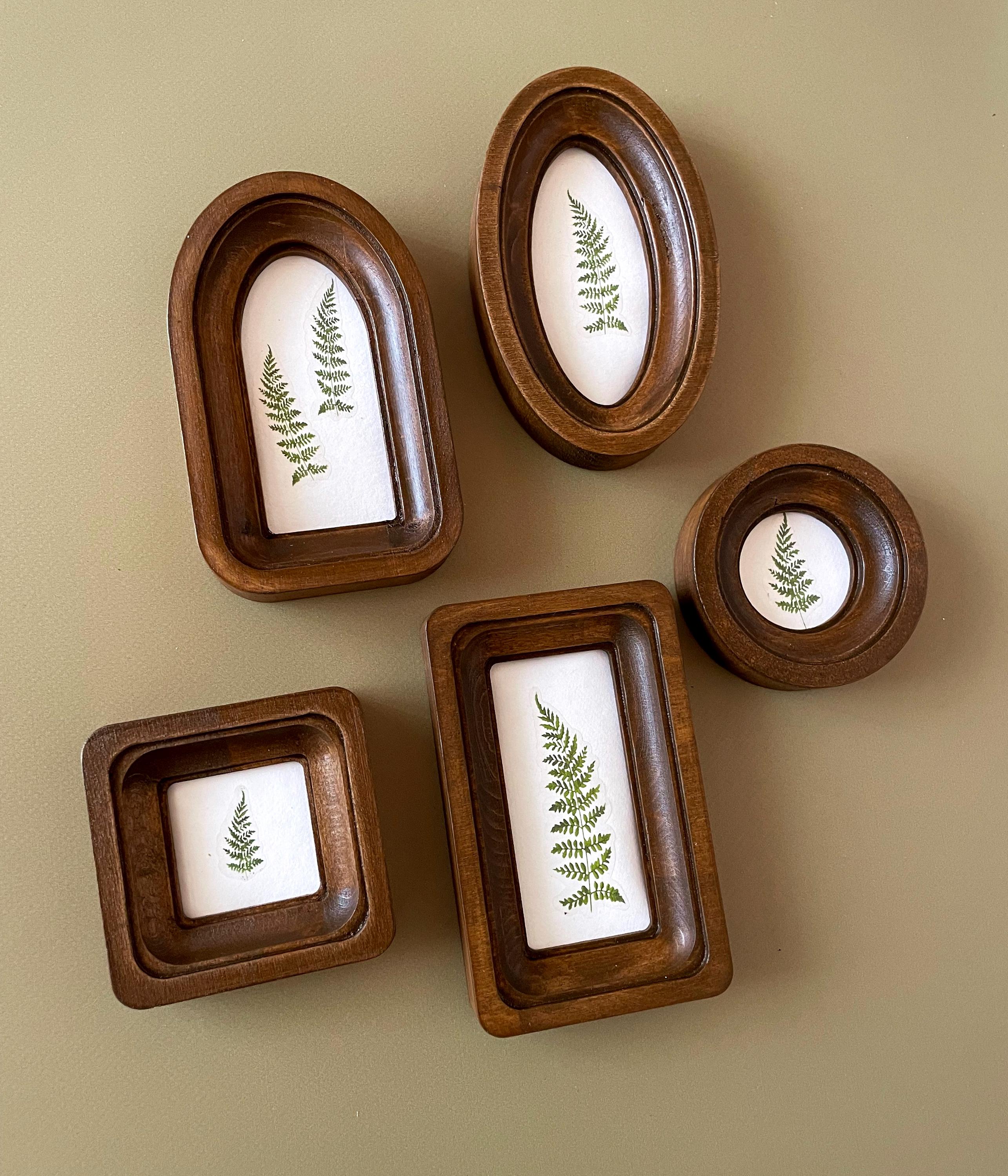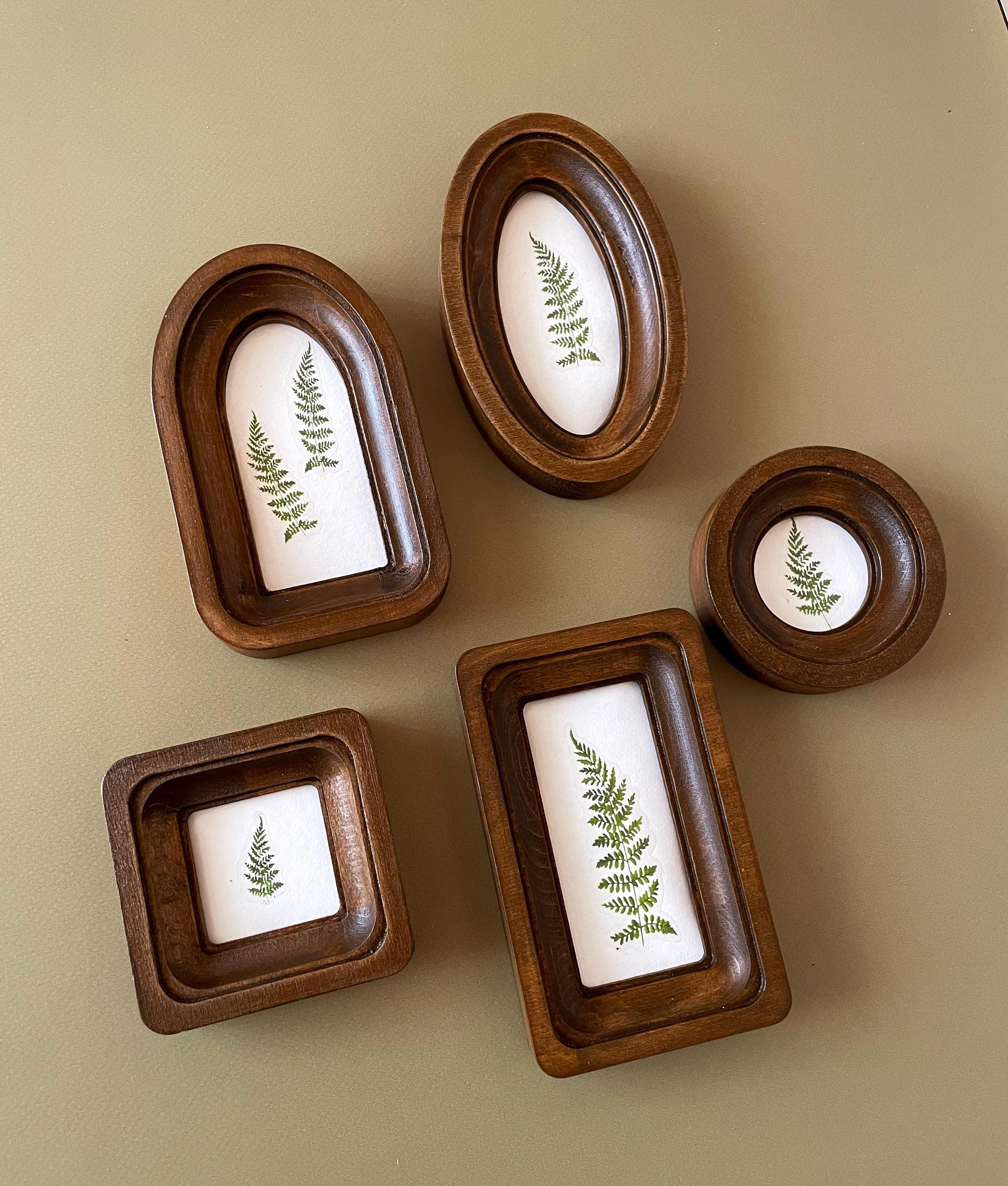 "ABOUT THIS ITEM Miniature Wooden Frame Set 2\" Round Frame 2x4\" Oval Frame 2x4\&quo...
