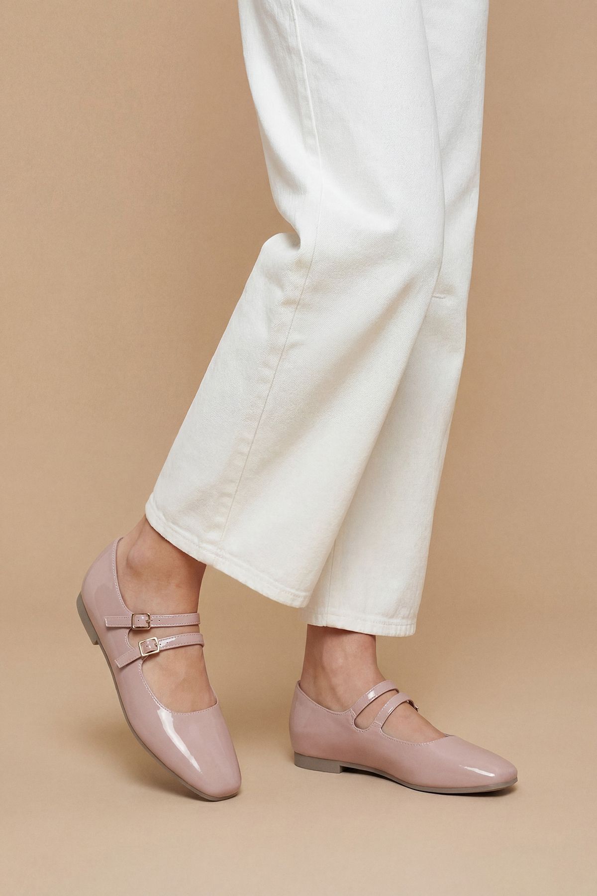 Shirley Faux Patent Leather Double Buckle Flat Ballerinas