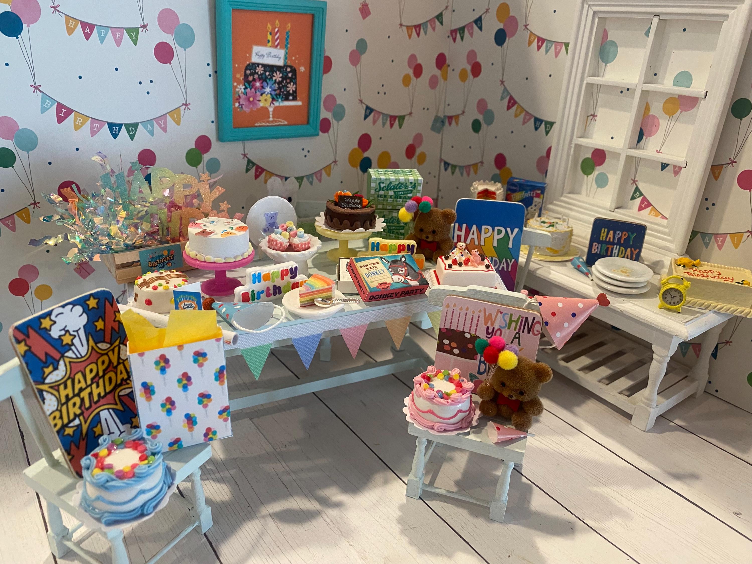 Miniature Birthday Party, Dollhouse Birthday Accessories, 1:12, Cak...