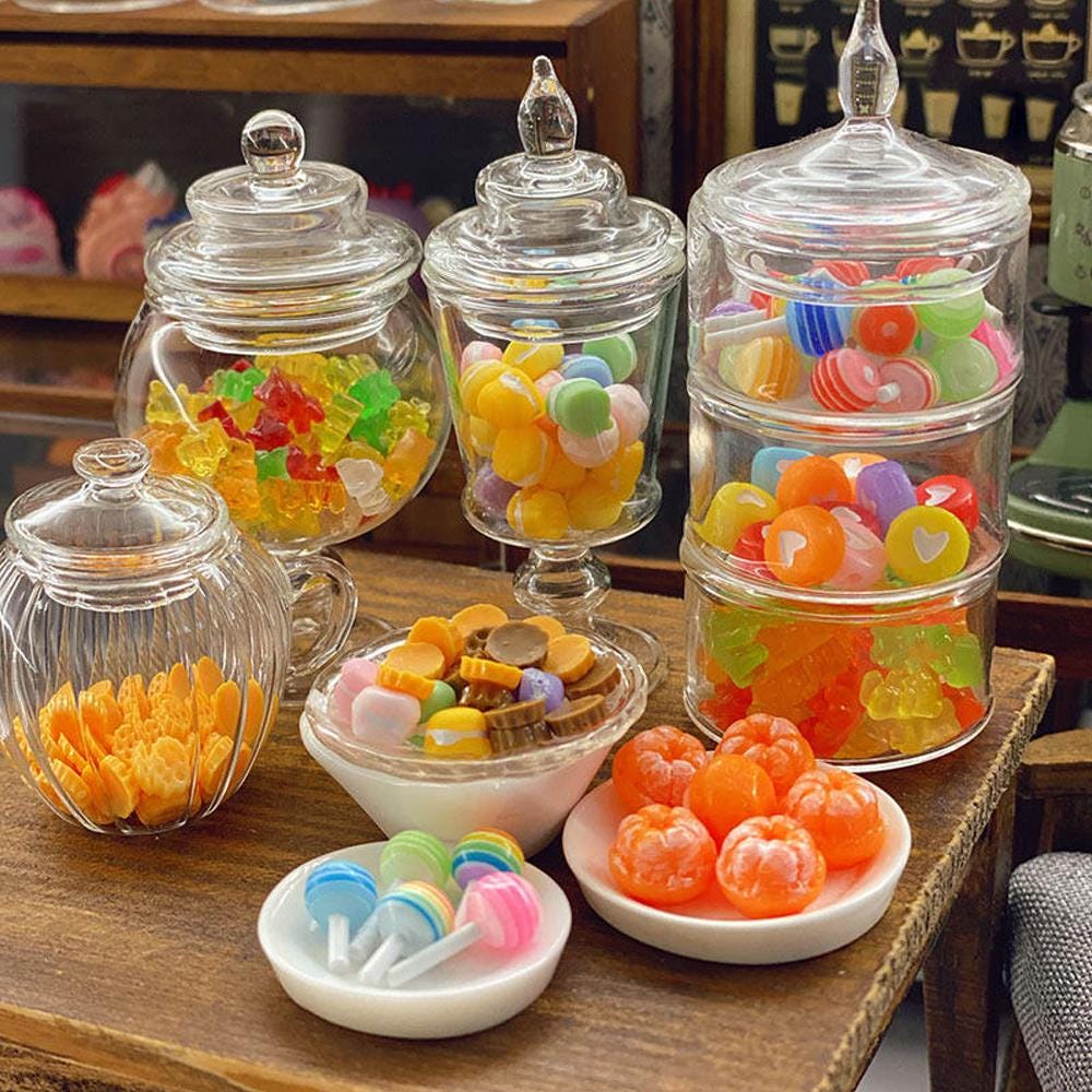 Miniature Candy Jars - Filled Gummies, Lollipops, Tiny Sweets, Doll...